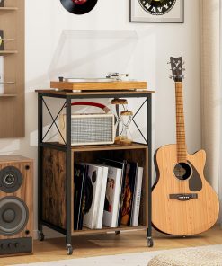 KOMFOTTEU Meuble Platine Vinyle avec Station de Charge, Support de Tourne-Disque avec Séparateurs Amovibles, Meuble Tourne-Disque, Cadre en Métal, 50 x 45 x 82 cm, Style Industriel
