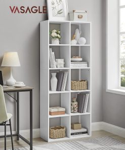 VASAGLE Bibliothèque, Étagère de Rangement 10 Compartiments, Meuble, Cube, pour Salon, Bureau, Chambre, Séparateur de Pièce, Style Scandinave, Blanc LBC168T14