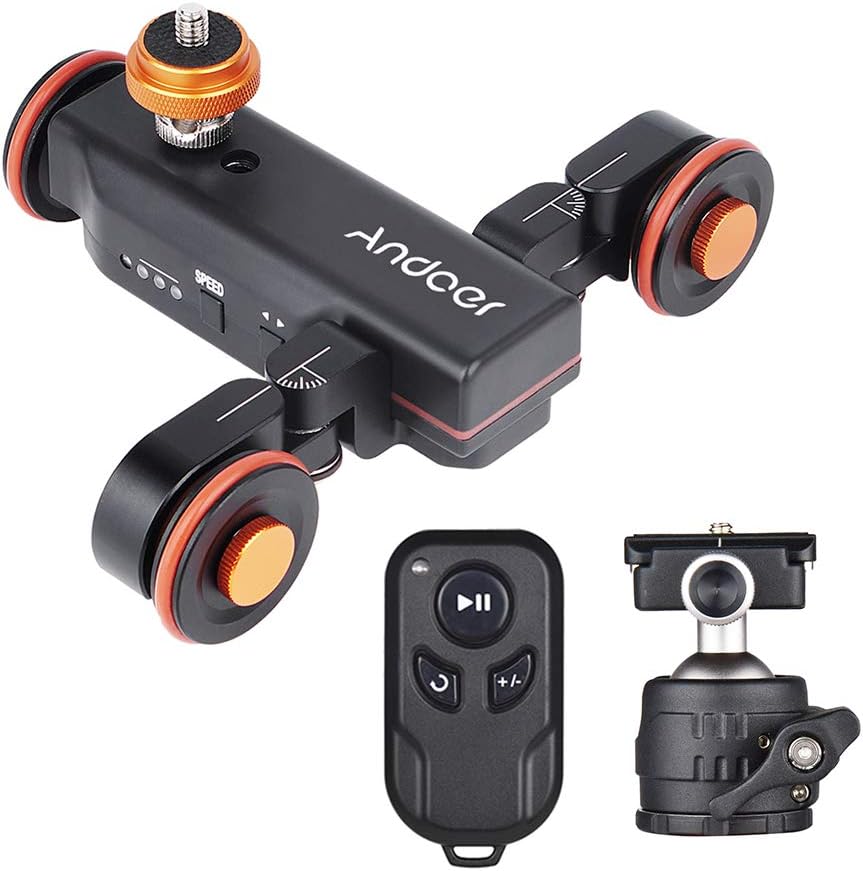 - La convertible de 1/4″ à 3/8″ connt à la plupart des supports d’appareil photo/smartphone; vous pouvez également utiliser le ballhead inclus avec ce dolly pour obtenir une utilisation plus flexible et plus stable.