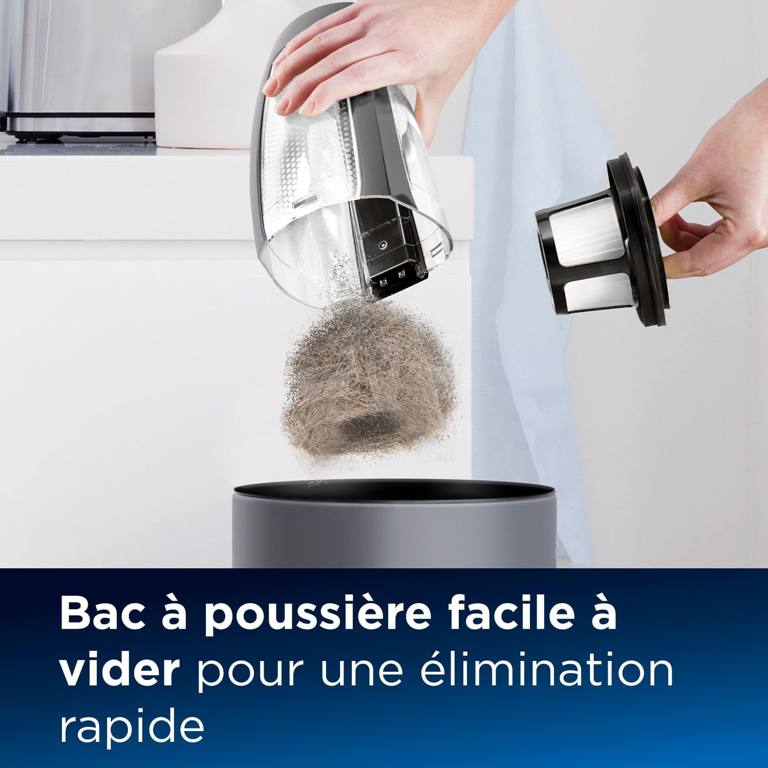 - BAC À POUSSIÈRE SPACIEUX : Le grand bac à poussière est facile à vider, ce qui permet une élimination rapide des poils d’animaux et des débris