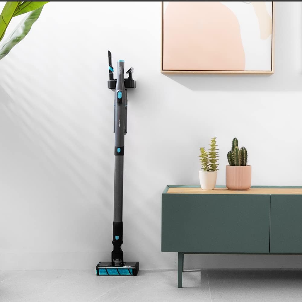 Aspirateur-balai Scoba 2100 Twice Max avec moteur numérique Brushless de 210 W et une puissance d’aspiration de 20 kPa. Jusqu’à 45 minutes d’autonomie. Deux puissances. Tube + double brosse motorisée Dual Brush (brosse mixte et brosse Jalisco). Avec accessoire 2 en 1, accessoire pour les tissus d’ameublement, accessoire motorisé pour tissus d’ameublement et matelas et support mural.