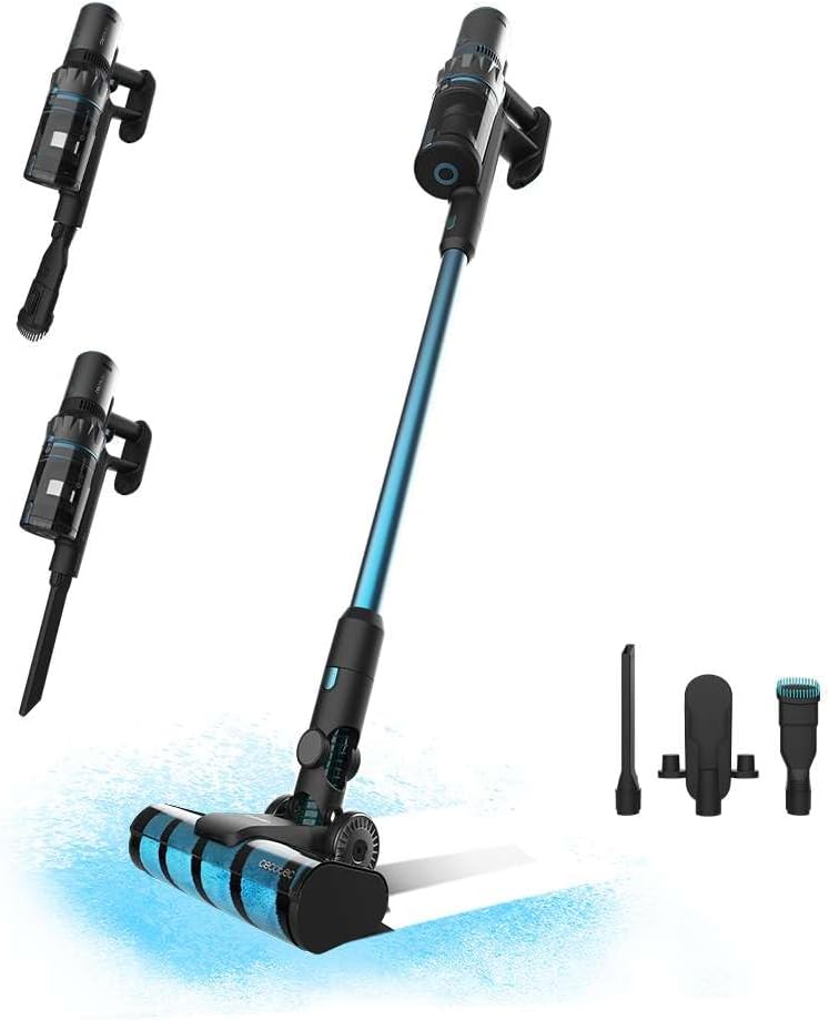La aspiradora ofrece buena relación calidad-precio: buena succión, fácil de usar, materiales de calidad y pantalla con porcentaje de batería. Incluye pieza para anclar en pared y cargar además de sujetar dos complementos; el botón se pulsa una vez para activar/desactivar. Contras: algo más pesada de lo esperado, instrucciones mejorables y el cepillo para mascotas funciona solo con pelo largo. En general, un muy buen producto.