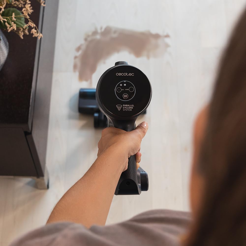 - Technologie 360º pour atteindre tous les coins de la maison, même les plus élevés. Le poids est centré sur la poignée pour soulever l’aspirateur facilement. Efficacité maximale tout au long de sa durée de vie grâce à la technologie Parallel Cyclone System. Il intègre les dernières avancées en matière d’aspiration pour séparer les particules par force centrifuge.