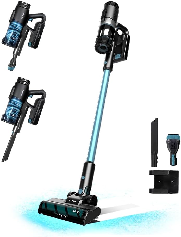 Cecotec Aspirateur balai sans fil Conga Rockstar 1500 Ray Jalisco. 215 W, 12 kPa, Autonomie 45 min, 3 en 1, Brosse Jalisco, Accessoires, 2 Programmes, Cyclone Parallèle, Réservoir 500 ml