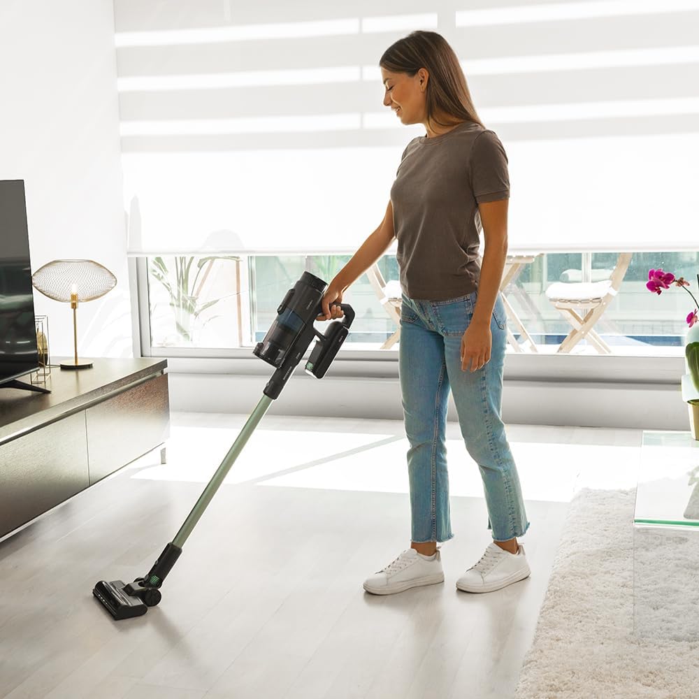 - Aspirateur sans fil 3 en 1 : vertical, balai et à main, avec moteur à balais, puissance d’aspiration maximale et design à 360º pour éliminer la poussière de n’importe quel endroit. Batterie au lithium-ion de 2200 mAh et 33,6 V * Max offrant une autonomie jusqu’à 60 minutes et réduisant le temps de charge à 5-6 heures. Vous pourrez aspirer toute votre maison sans avoir besoin de le recharger. Et avec la brosse Jalisco.