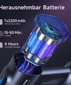 - 【Autonomie de 50 minutes】Grâce à ses 7 batteries de 2200mAh, cet aspirateur sans fil offre jusqu’à 50 minutes d’autonomie en mode minimum pour un nettoyage en profondeur de toute la maison. Sa batterie amovible facilite la recharge et le remplacement.