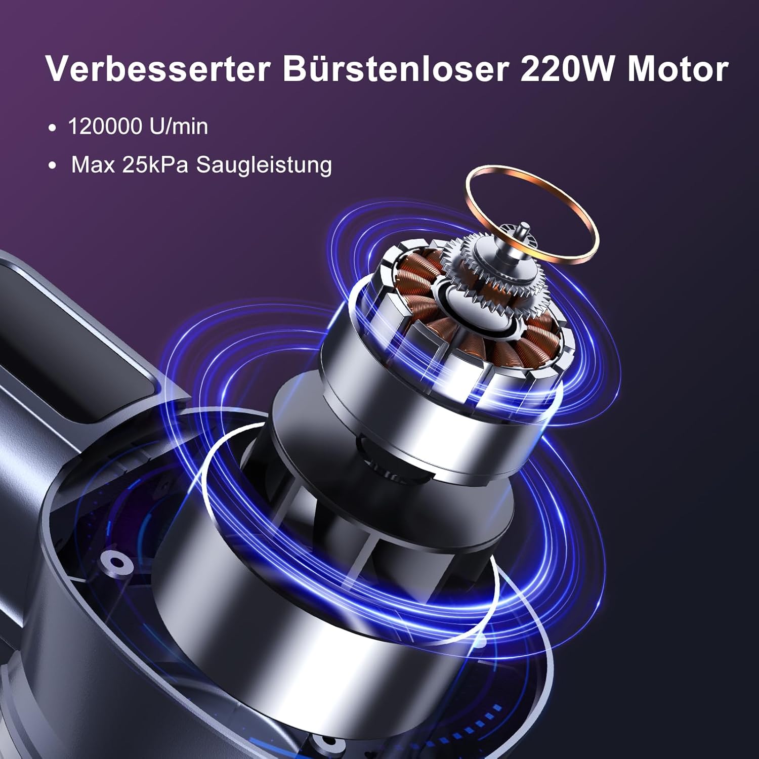 - 【25KPa Puissance d’aspiration élevée】Grâce à son moteur numérique amélioré de 220W, la puissance d’aspiration peut atteindre jusqu’à 25KPa en mode Max. Cet aspirateur sans fil assure un nettoyage en profondeur de tous types de sols, tels que les sols durs, les tapis, le parquet ou le carrelage. Les déchets comme les miettes, la litière pour chat, les poils d’animaux ou les grains peuvent être nettoyés sans effort.