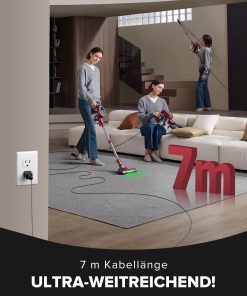 - 【Aspiration puissante pour un nettoyage en profondeur】Équipé d’un moteur haute performance de 600 W, cet aspirateur puissant élimine instantanément les débris de grande taille pour un nettoyage sans zones mortes. La brosse rouleau récemment améliorée, combinée à une tête électrique à haute vitesse, déloge et désintègre efficacement les taches tenaces, augmentant l’efficacité du nettoyage de 50 % par rapport aux modèles traditionnels. Avec une aspiration ultra-puissante de 60 KPA, cet aspirateur balai filaire extrait avec précision la poussière incrustée dans les tapis et les fissures, garantissant un nettoyage complet et fluide.