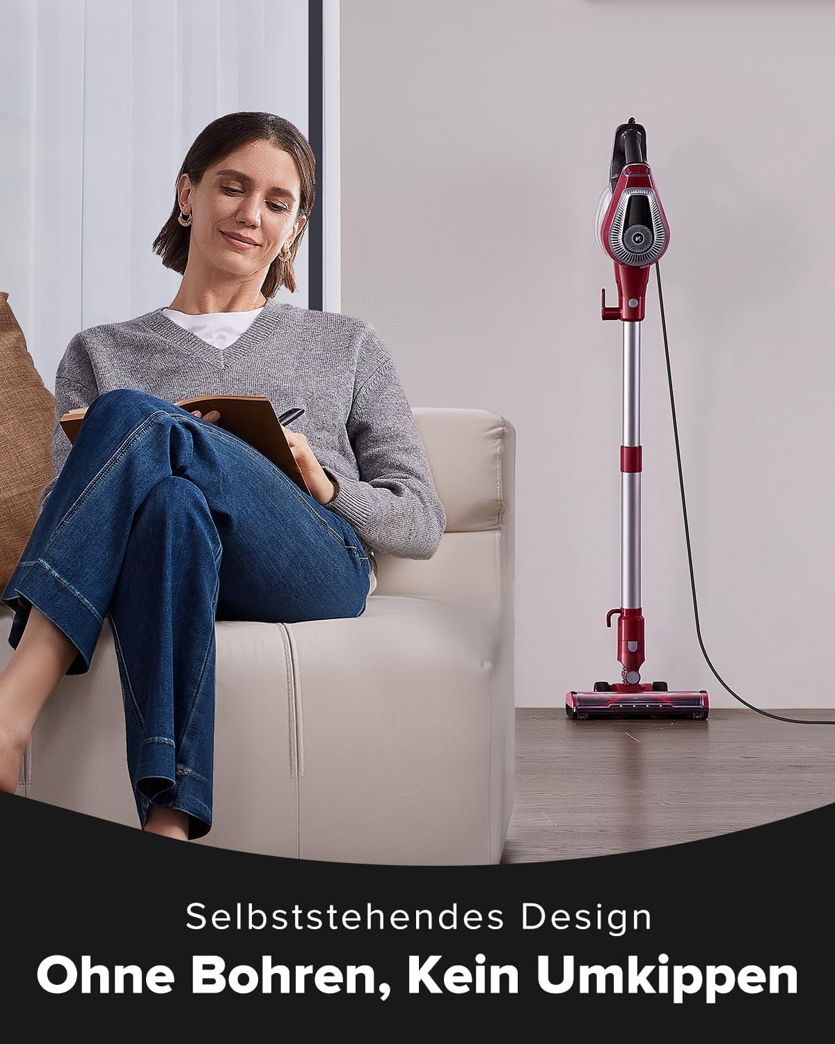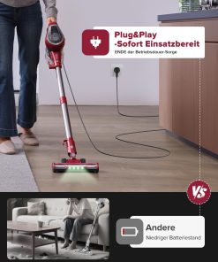 Vexilar C8 Aspirateur Balai avec Fil, 600W/60Kpa Aspirateur Balai Puissant avec Recharge Murale, Cable de 7 m, Brosse Anti-Emmêlement,1,5L Aspirateur pour Tapis,Sols Durs,Poils d’animau