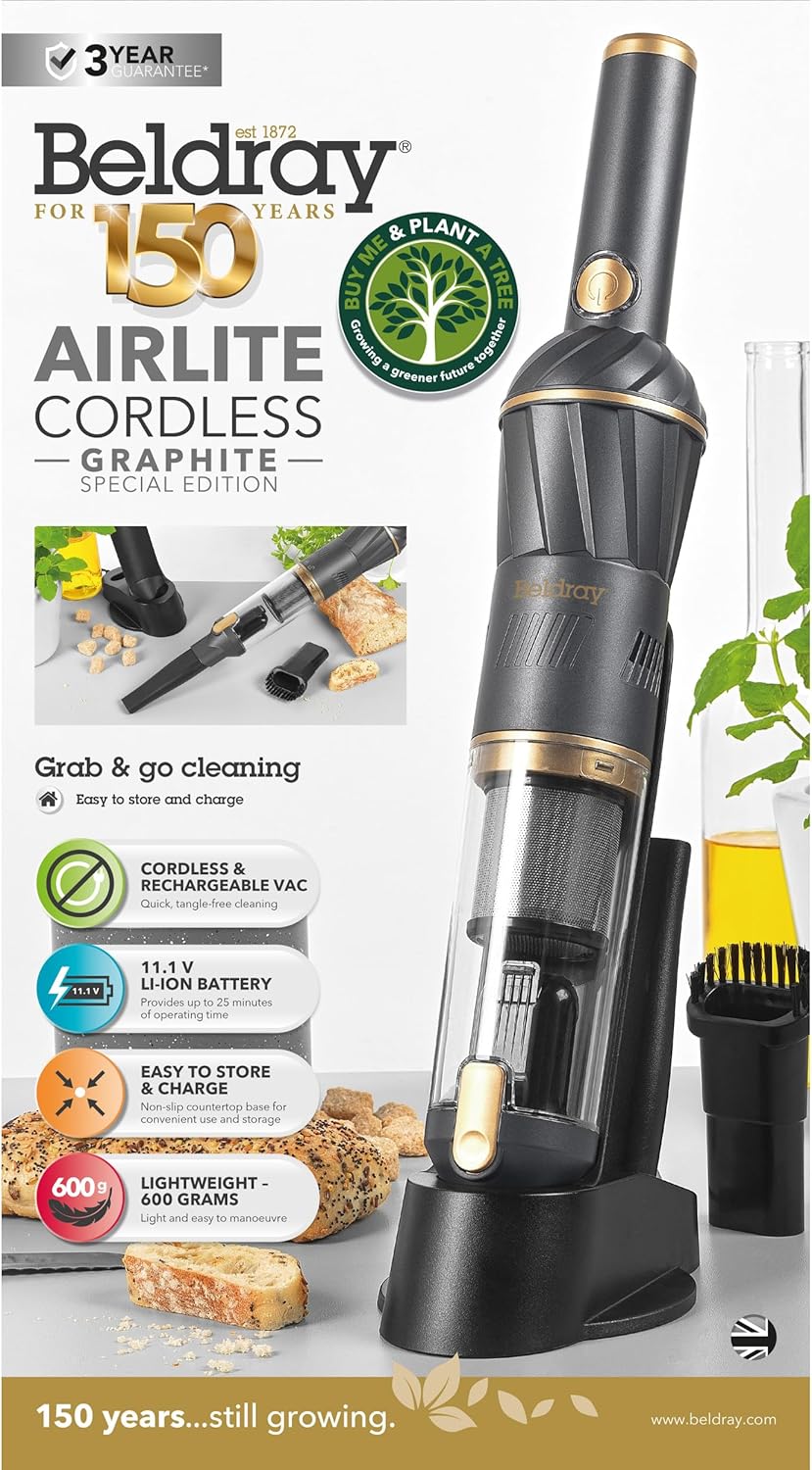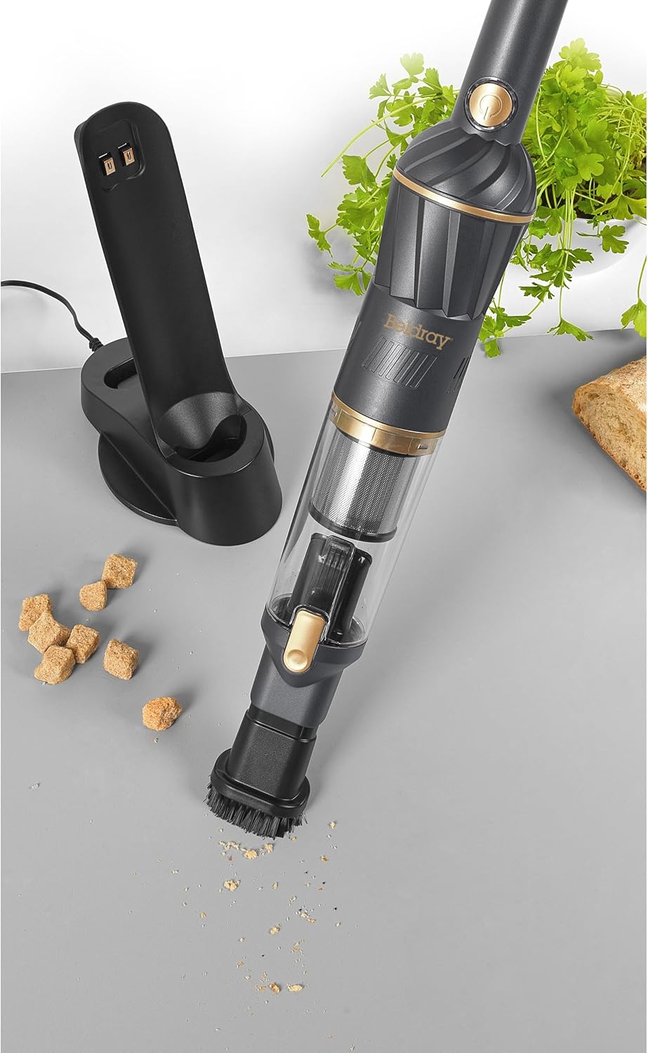 I absolutely love the little Beldry; it picks up bits from kitchen sides and floors, and I run it along kickboards where things drop — the suction on both levels is really good and picks everything up. I use it on my mattress and in nooks and crannies; it’s easy to empty and clean the filter and dries quickly. I don’t need to get the big hoover out for small jobs, and it charges well — I’ve had it a few weeks with no charging problems. 100% brilliant, a must-have and great value for the price.