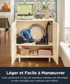 Agréablement surprise par l’efficacité de cet aspirateur : il aspire parfaitement les tapis et les sols (parquet, carrelage). Simple d’utilisation et compact pour le rangement, son niveau sonore est acceptable. Je recommande cet aspirateur pour son efficacité et son prix abordable.