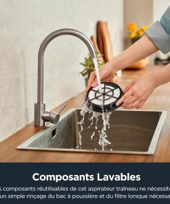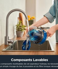 - Récipient à poussière 1,5 L et système de filtration cyclonique : Grâce à la conception du filtre lavable et sans sac de 1,5 litres, il n’y a pas de frais supplémentaires liés à l’achat ou au remplacement du sac à poussière ou du filtre. La technologie cyclonique sépare les particules indésirables du flux d’air, garantissant ainsi un environnement propre dans votre maison.