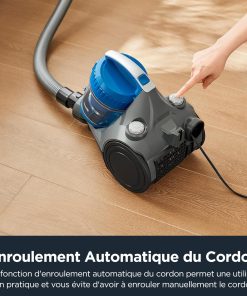 - Enroulement automatique du câble : L’aspirateur cyclonique Eureka est doté d’un enrouleur automatique du câble, évitant ainsi les problèmes d’emmêlement et vous faisant gagner un temps précieux. L’aspirateur cyclonique est livré avec un câble d’alimentation de 5 m et un bac à poussière facile à vider sur simple pression d’un bouton.