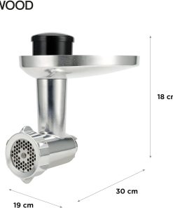 Description du produit Kenwood KAX950ME Accessorio Tritacarne per impastatrice Planetaria, Acciaio, Argento. Tritacarne per preparare in casa il proprio trito, selezionando il tipo di carne e la quantità di grasso. Corpo in metallo e vite con alta resistenza all'usura. Sistema di trafila a lama circolare con 3 dischi in acciaio: trito fine (3 mm) trito medio (4,5 mm) trito grosso (8 mm). Completo di 2 adattatori per insaccare salsicce grandi/medie. Parti smontabili per una completa pulizia. Adatta per le impastatrici planetarie kenwood di ultima generazione (modelli KCC+KVC+KVL+KMX). Adatta per le impastatrici planetarie kenwood modelli KM con l'utilizzo dell'adattatore KAT001ME (acquistabile separatamente). Contenuto della confezione: 1x Accessorio Tritacarne KAX950ME, 2 x Adattatori per Insaccare Contenu du coffret Hachoir de Boucher