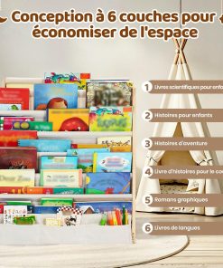 - Bibliothèque Enfant à 7 Niveaux pour un Accès Facile : Cette étagère à livres pour enfants dispose de 7 niveaux inclinés, permettant aux tout-petits de voir et de choisir aisément leurs livres préférés, favorisant ainsi leur autonomie et leur amour de la lecture