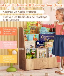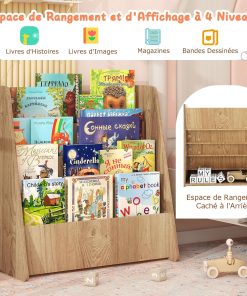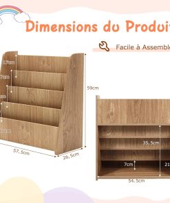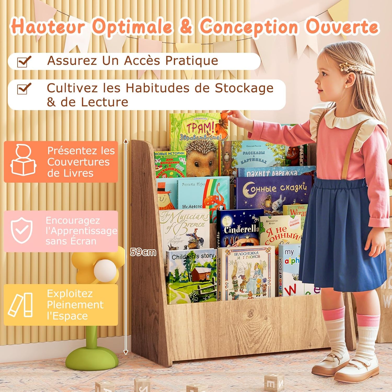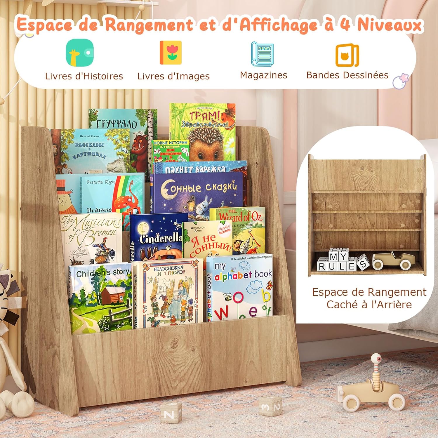 COSTWAY Bibliothèque Enfant en Bois à 4 Niveaux de Compartiments Ouverts, Étagère à Livres avec Patins Antidérapants, Meuble Rangement Jouet Montessori pour Bureau Chambre d’Enfant, 57,5×26,5x59cm