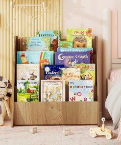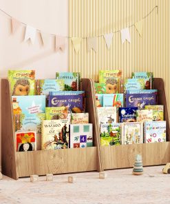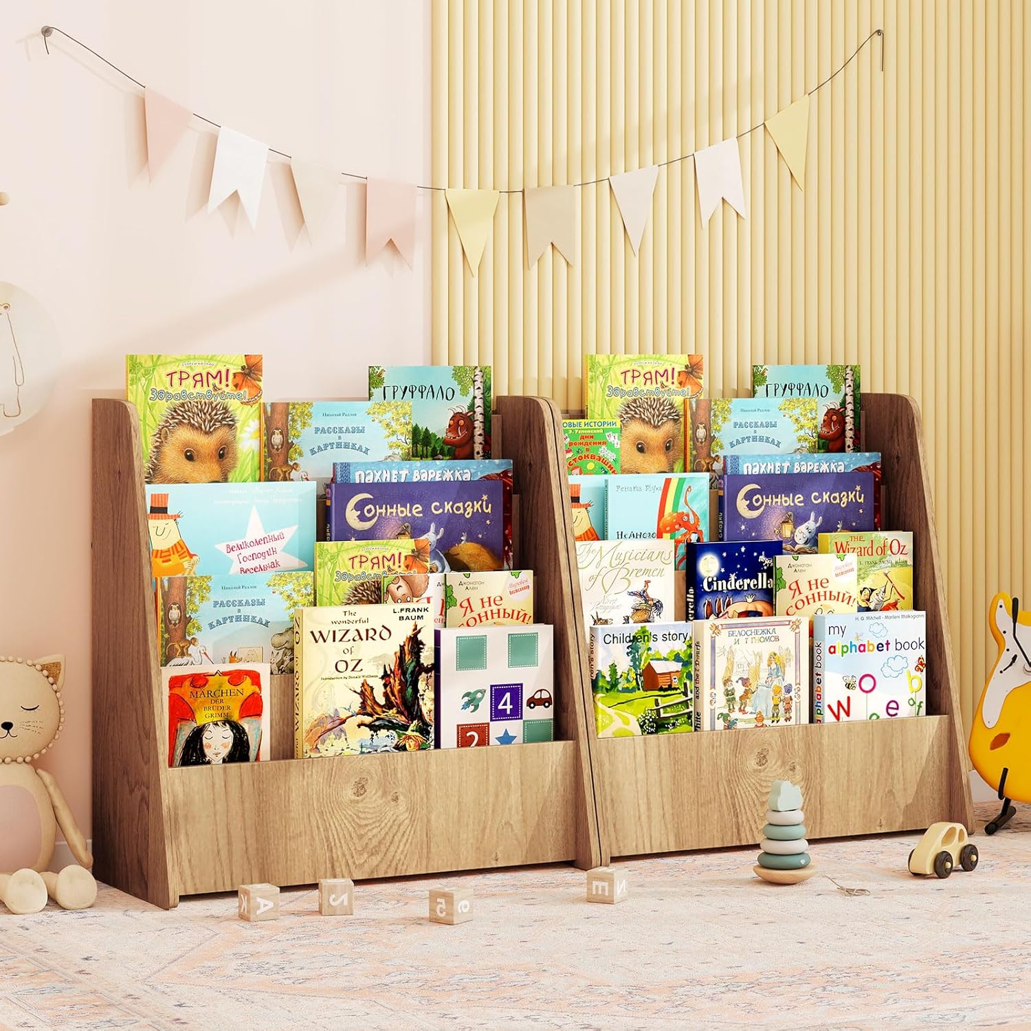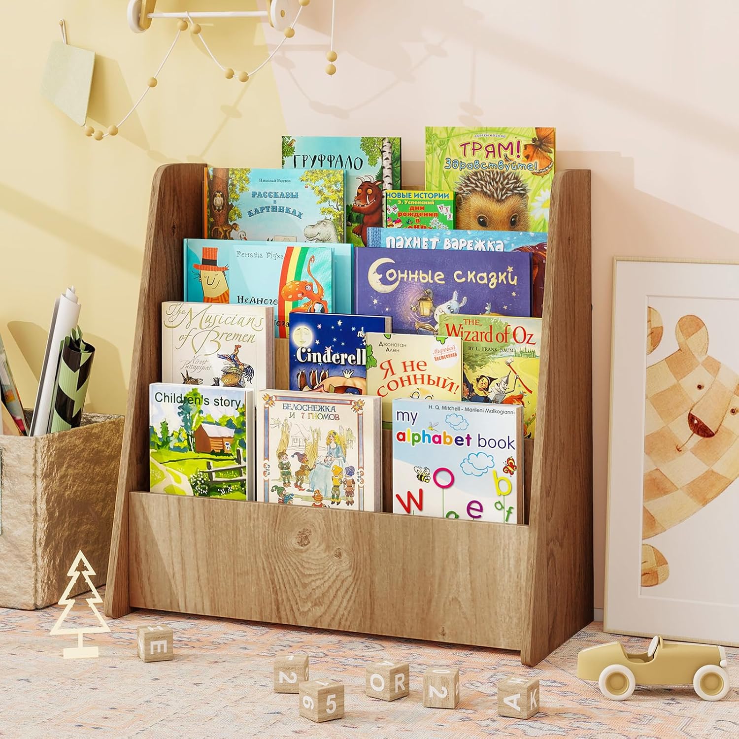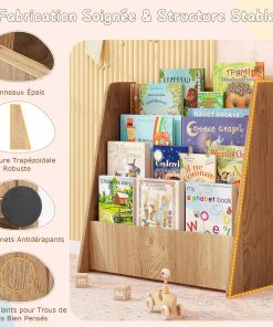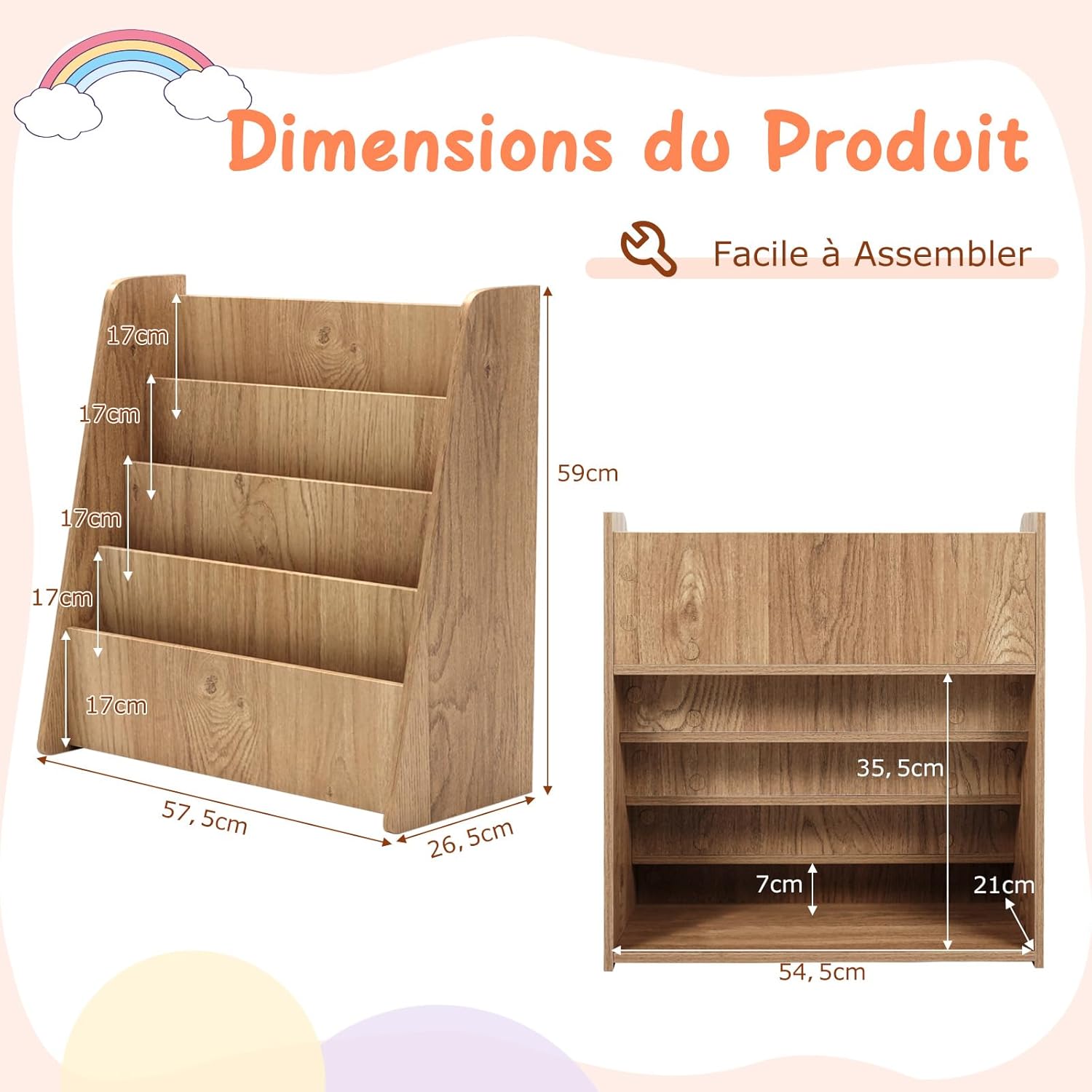 COSTWAY Bibliothèque Enfant en Bois à 4 Niveaux de Compartiments Ouverts, Étagère à Livres avec Patins Antidérapants, Meuble Rangement Jouet Montessori pour Bureau Chambre d’Enfant, 57,5×26,5x59cm