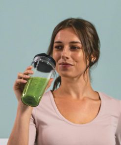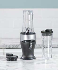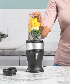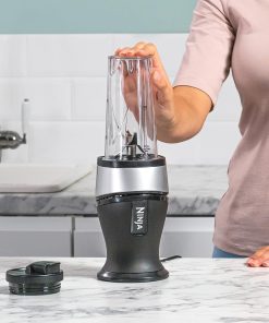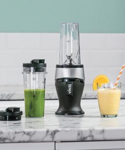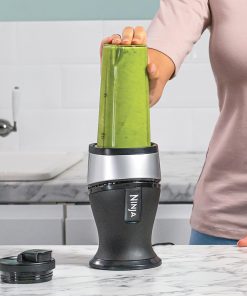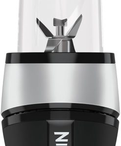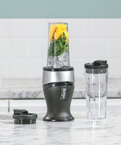 Ninja 700W Mixeur Slim et Smoothie Maker, 2x 470ml gobelets avec couvercles à bec, mixeur personnel, écrase la glace et les fruits congelés, argent/noir QB3001EUS