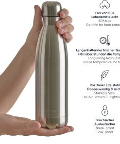 - ACIER INOXYDABLE : Nos gourdes Blumtal sont fabriquées en acier inoxydable robuste, qui ne rouille pas et qui est particulièrement durable. La bouteille est incassable et convient pour les aliments.