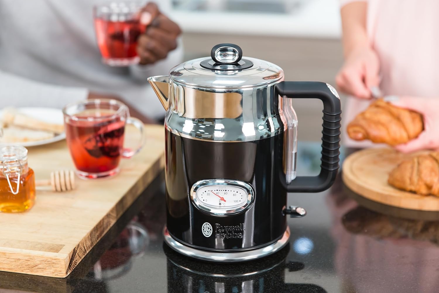 - Grande capacité de 1,7L avec niveau dâ€eau visible, marquage pour 1, 2 et 3 tasses. Ebullition rapide, jauge rétro indiquant la température de lâ€eau