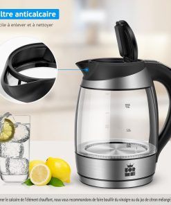 - Pour éliminer le calcaire de l'élément chauffant, nous vous recommandons de faire bouillir du vinaigre ou du jus de citron mélangé à de l'eau. Ne rayez pas les parois et la plaque chauffante en acier inoxydable. Il est facile d'éliminer le calcaire et le tartre des parois et de la plaque chauffante en faisant bouillir du vinaigre ou du jus de citron mélangé à de l'eau.