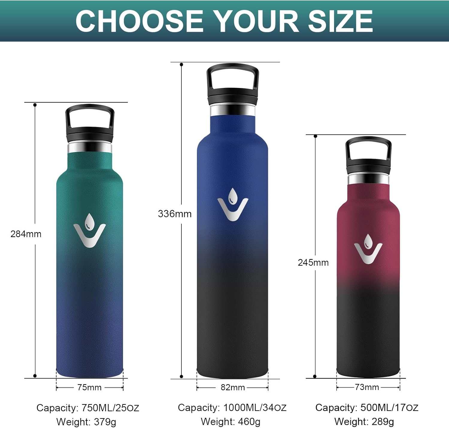 Vikastar Gourde Isotherme, 500/750/1000ml Sans BPA, Bouteille Isotherme, Garder au Chaud Pendant 12 Heures, Froid 24 Heures