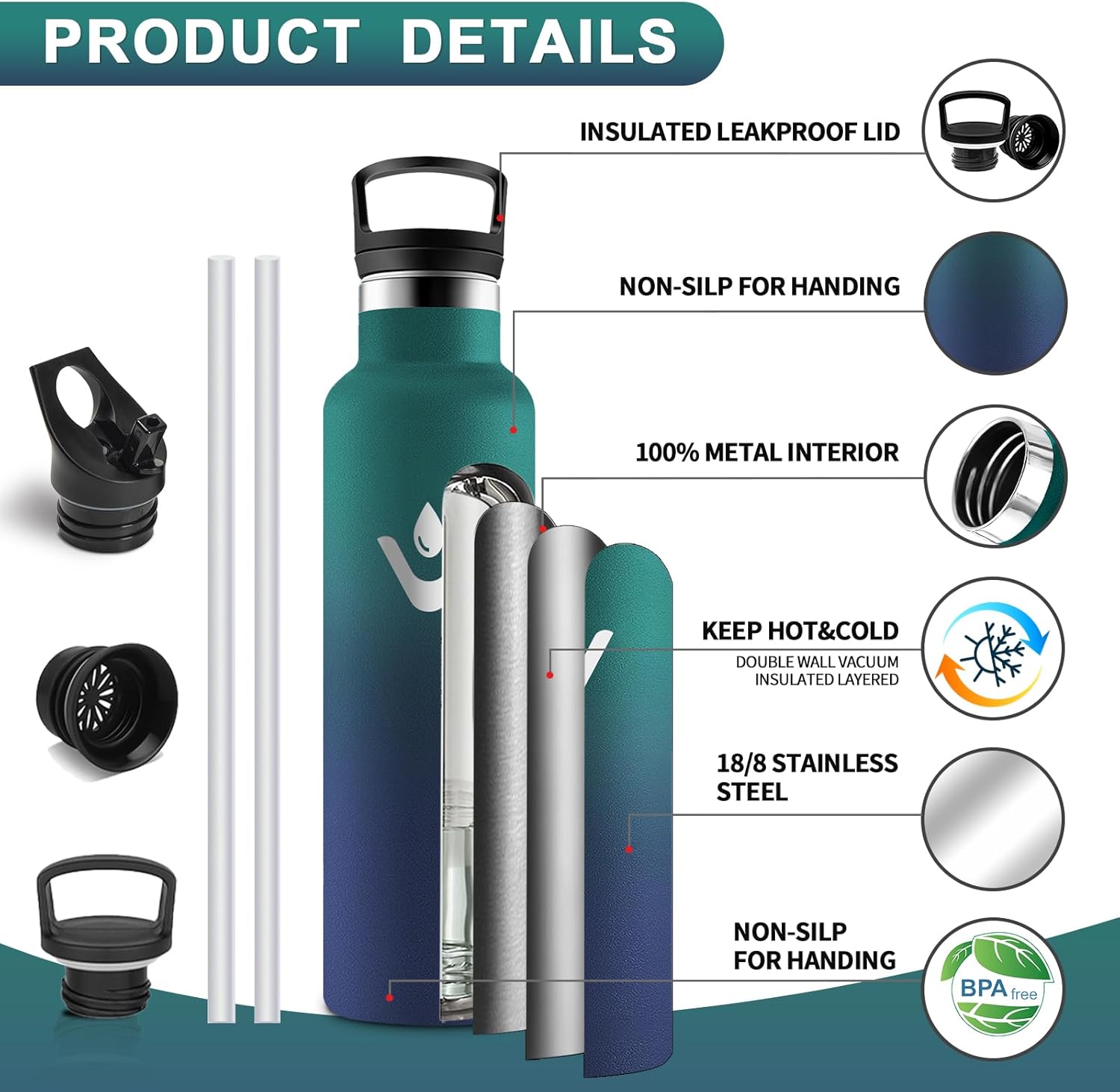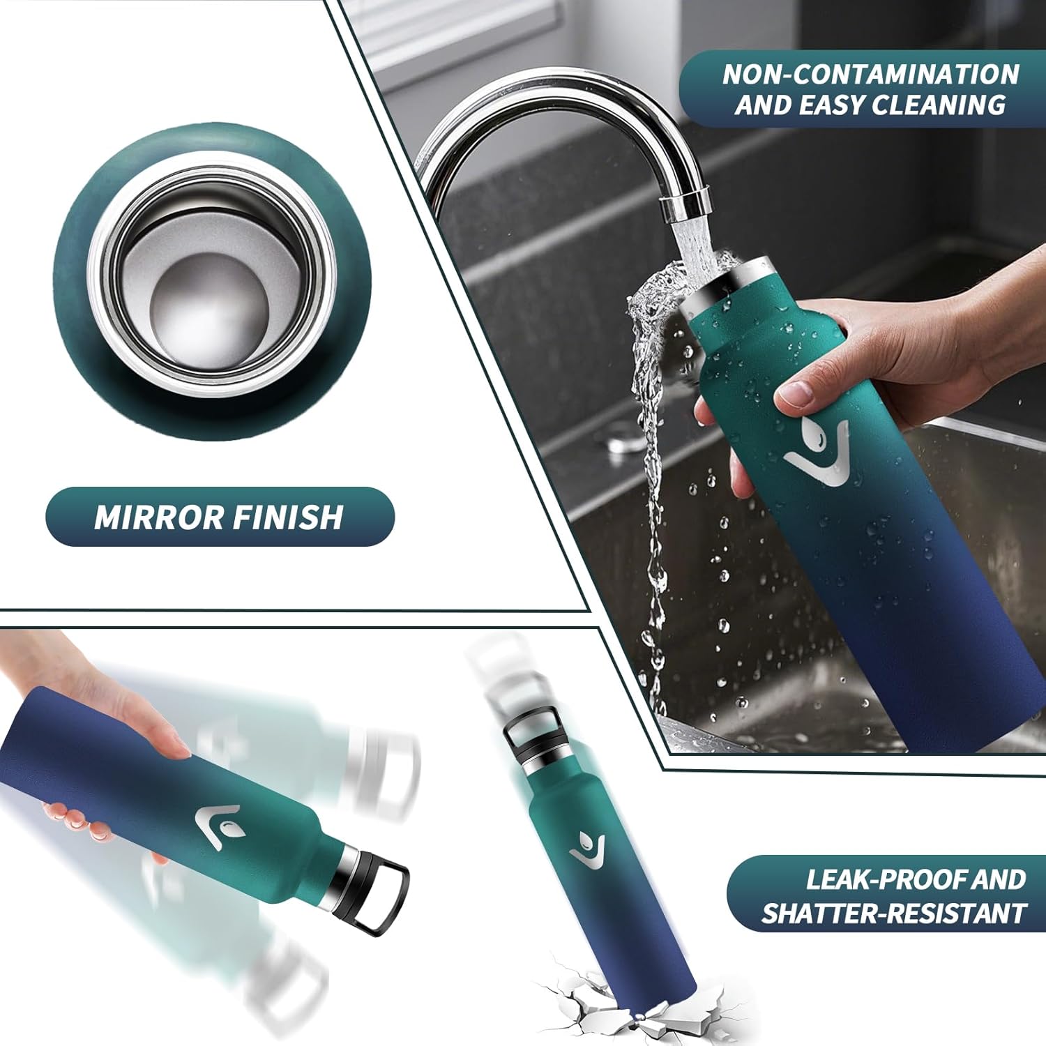 - 【Gourde Isotherme】:Vikastar gourde isotherme est fabriqué à partir d’un couvercle de haute qualité non oxydable, sans BPA, sans odeur, sain et adapté à votre eau potable quotidienne. Si vous cherchez une bouteille durable et sûre, c’est le bon choix!