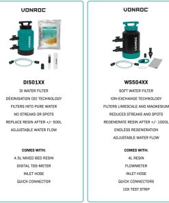 - Facilité d’utilisation : Équipé de robinets pour une alimentation en eau continue, d’un débitmètre pour surveiller la consommation d’eau et d’un tuyau de rinçage, ce kit est conçu pour une utilisation pratique et fréquente.