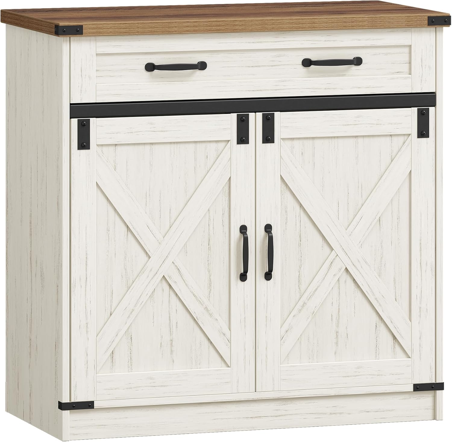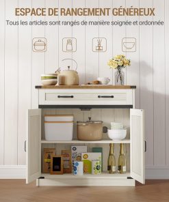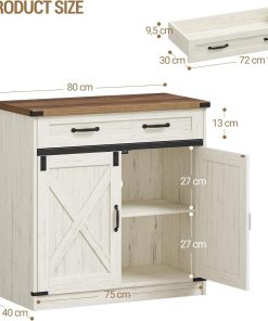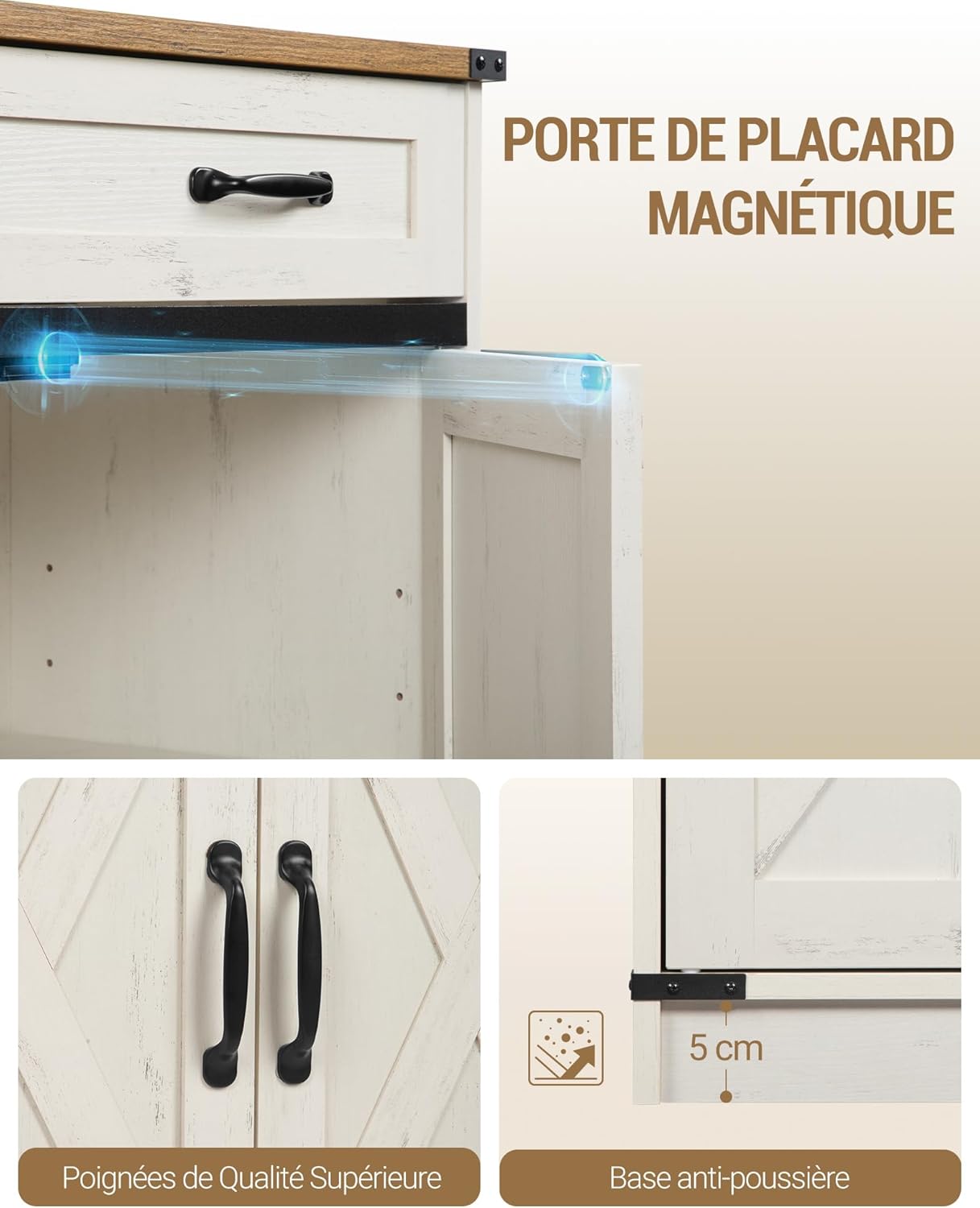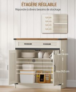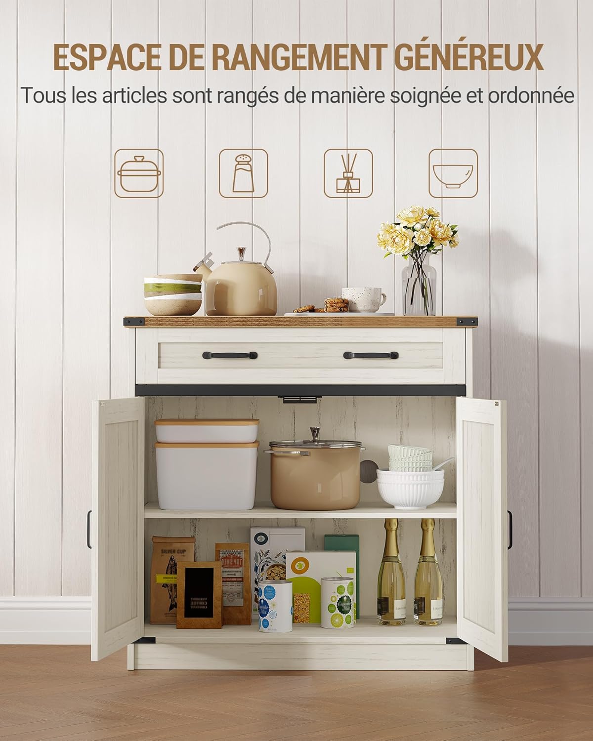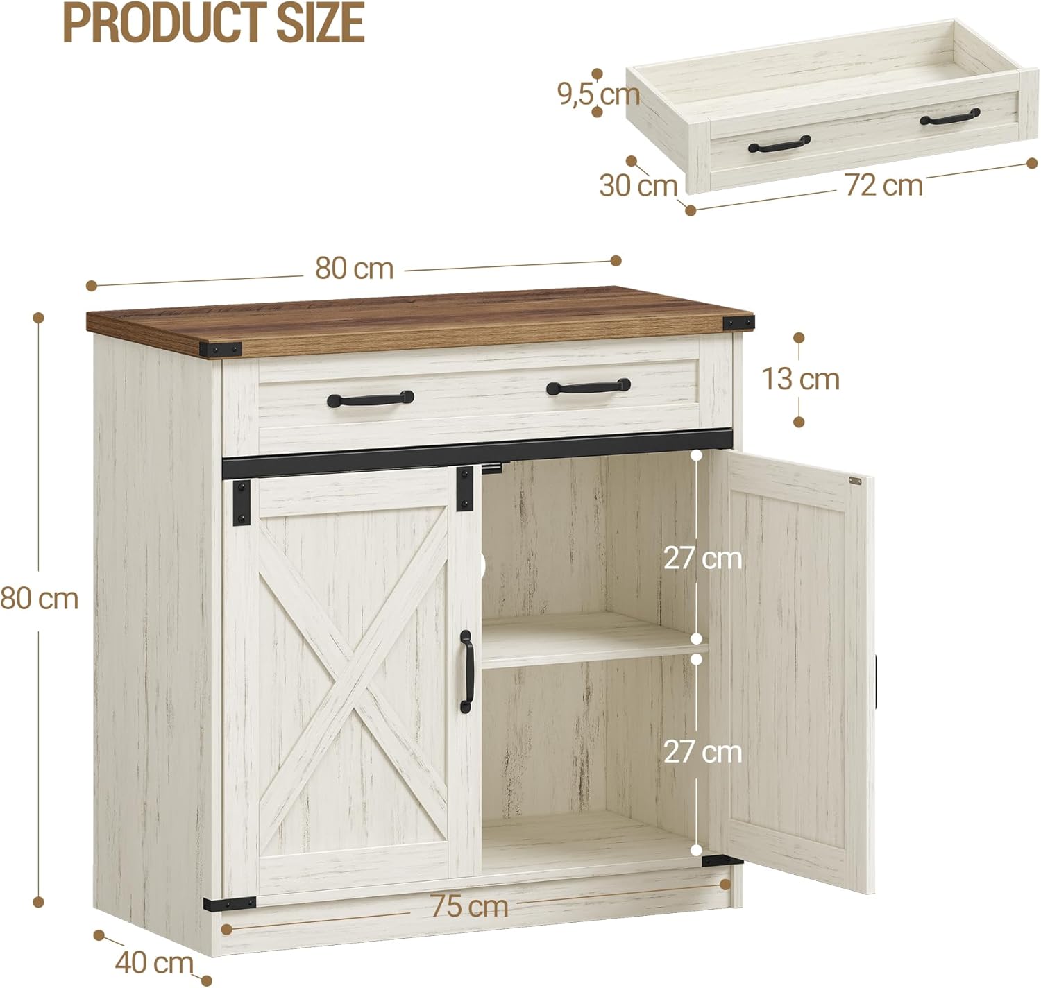 Hzuaneri Buffet, Meuble Cuisine à 1 Tiroir, Meuble de Rangement à 2 Portes, Étagères Réglables, Style Cottage, Cuisine, Salon, 40 × 80 × 80 cm, Marron Rustique et Blanc SC84814X