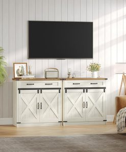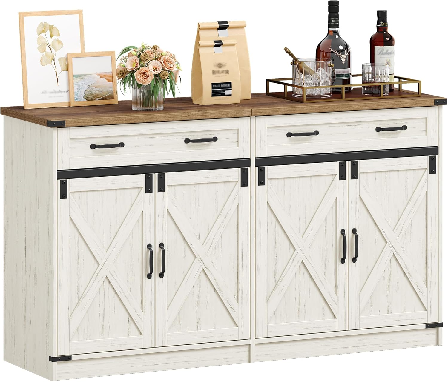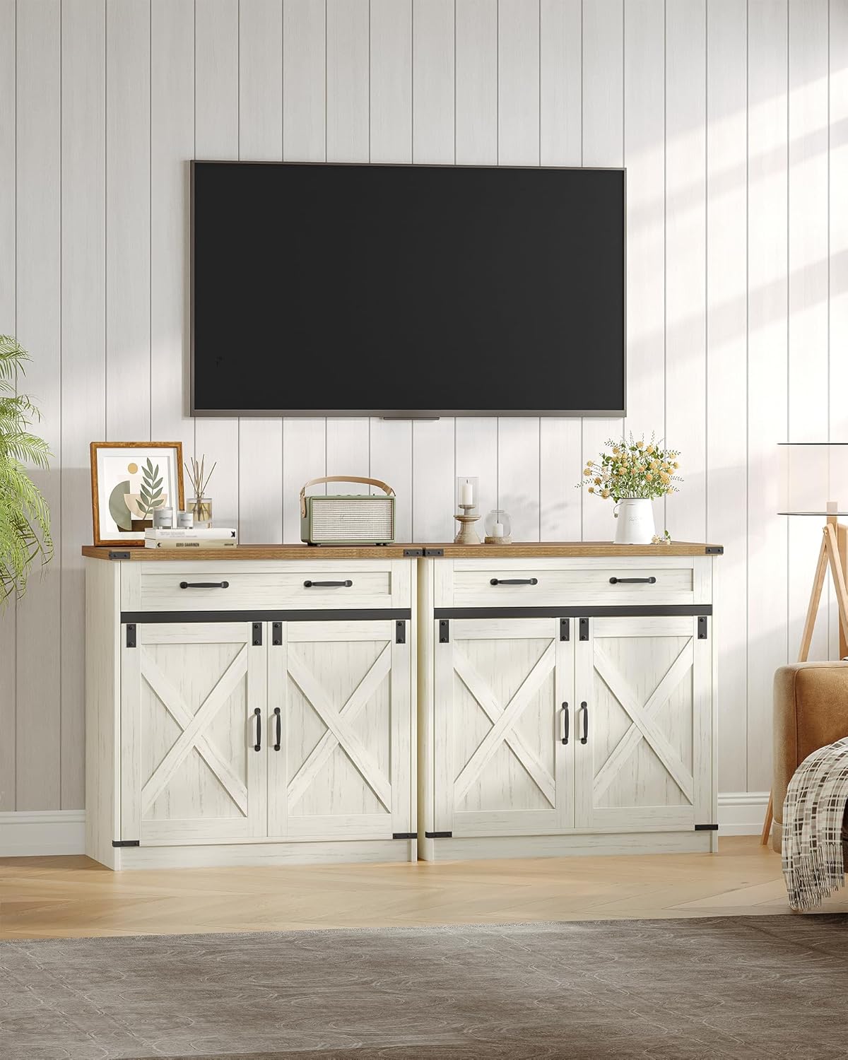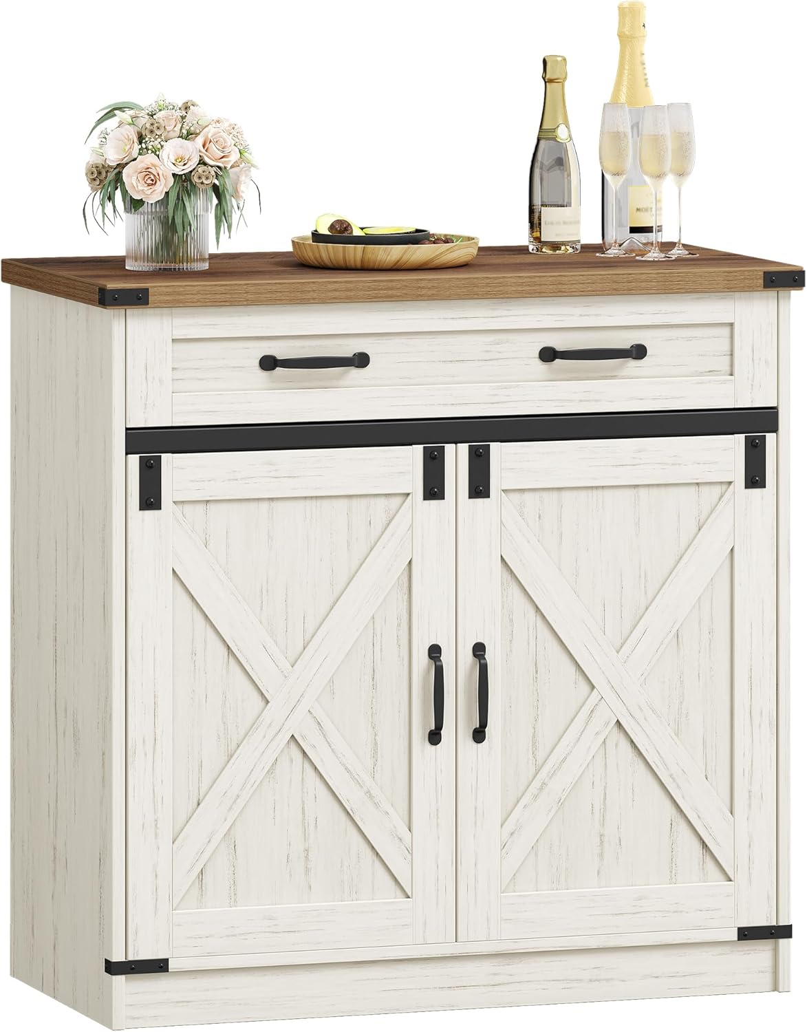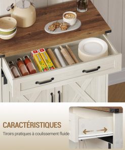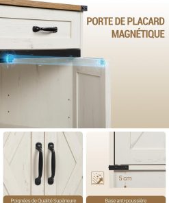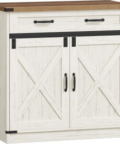 Hzuaneri Buffet, Meuble Cuisine à 1 Tiroir, Meuble de Rangement à 2 Portes, Étagères Réglables, Style Cottage, Cuisine, Salon, 40 × 80 × 80 cm, Marron Rustique et Blanc SC84814X