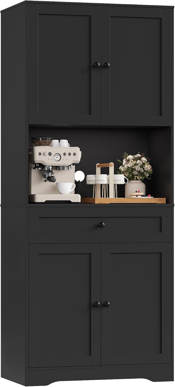 Buffet pratique et bien proportionné, idéal pour la cuisine ou la salle à manger. Les étagères réglables et le tiroir offrent un rangement flexible, l’emplacement pour micro-ondes est utile et le passage pour câbles est un plus. Le design est sobre et le produit paraît solide une fois monté.