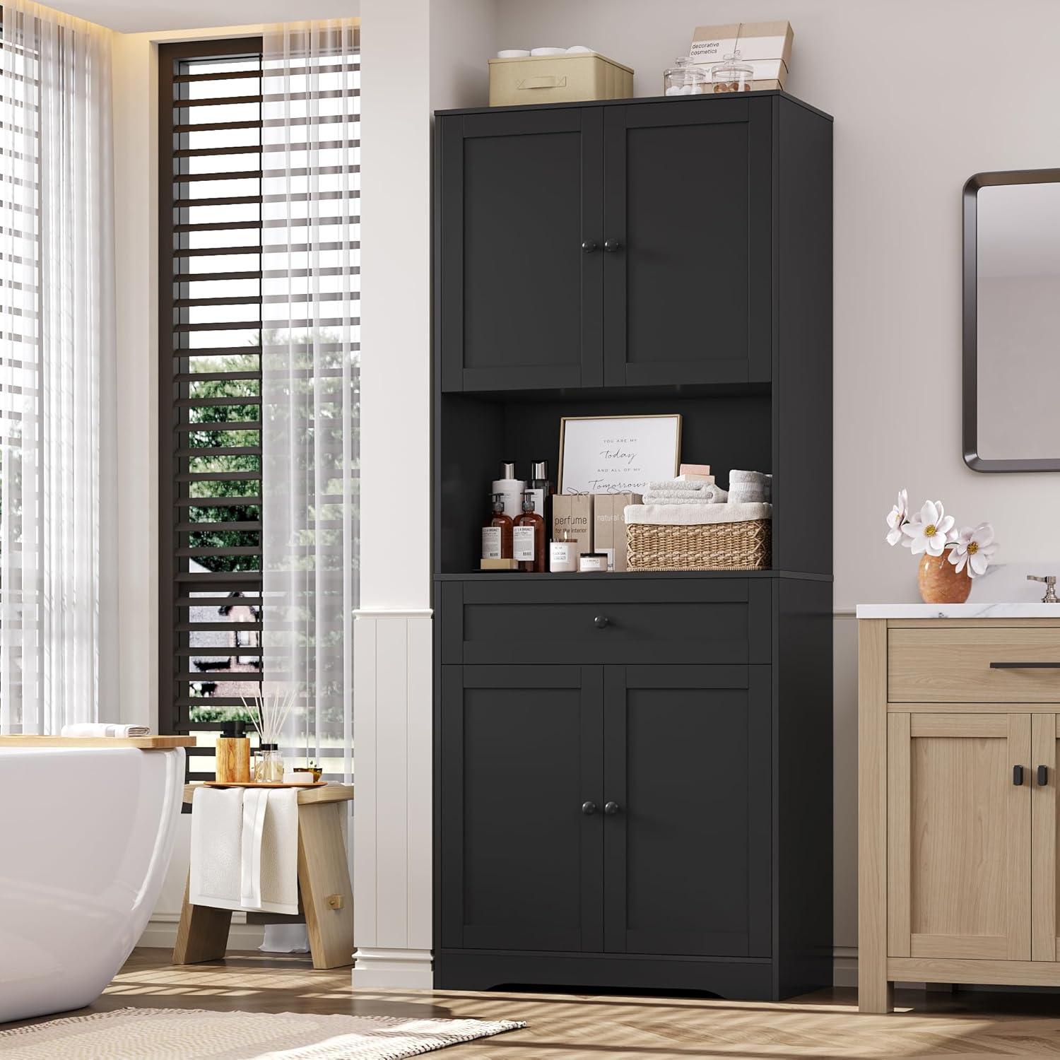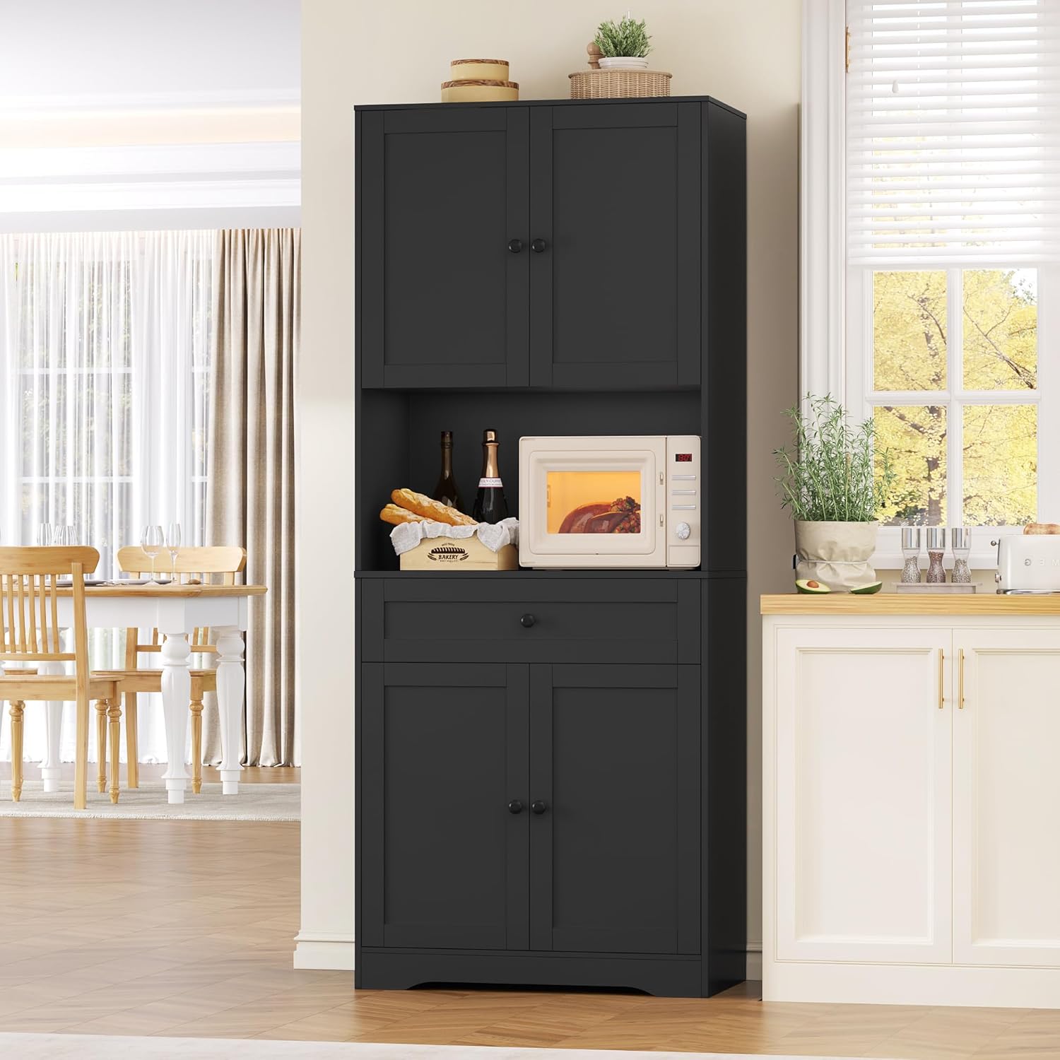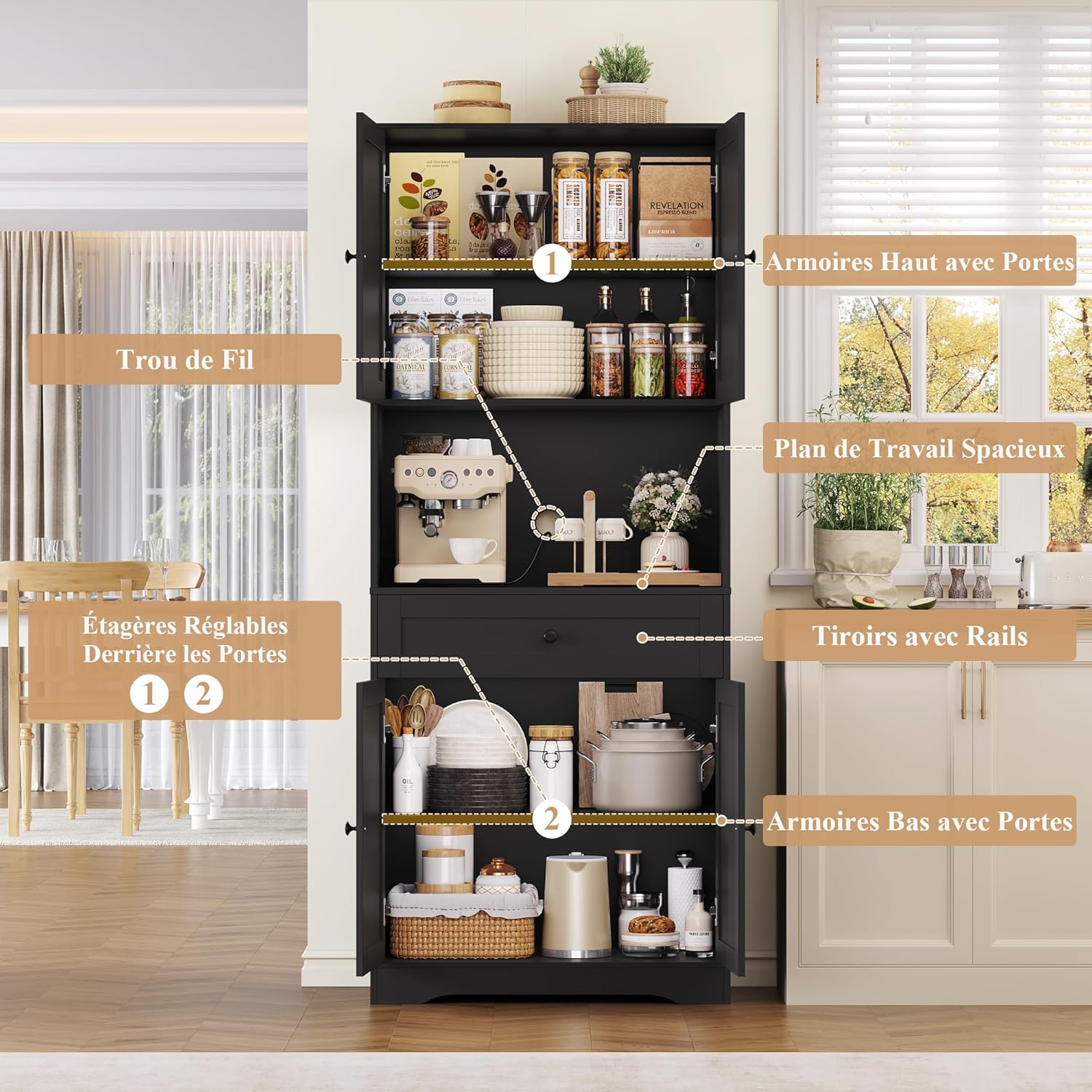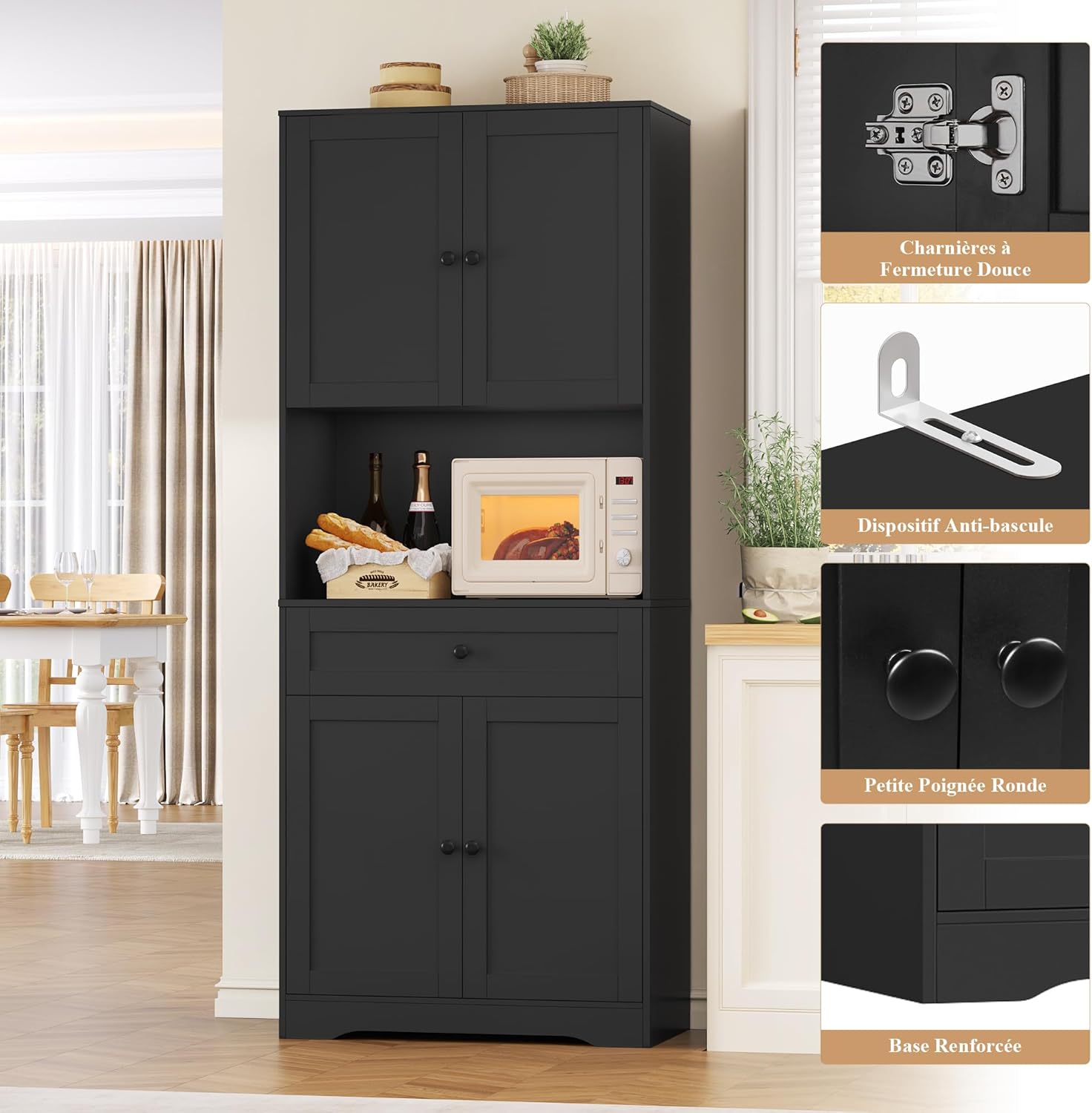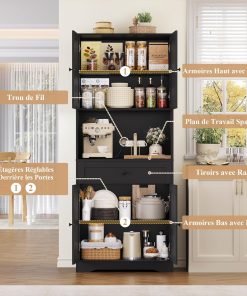 - Meuble de Rangement Polyvalent : Ce meuble de cuisine haut offre un design pratique pour répondre à vos divers besoins de rangement. Il peut servir de meuble rangement cuisine et de vaisselier salle à manger, de meuble salle de bain pour les articles de toilette dans la salle de bain, ou de bibliotheque pour les livres ou les objets de collection dans le salon