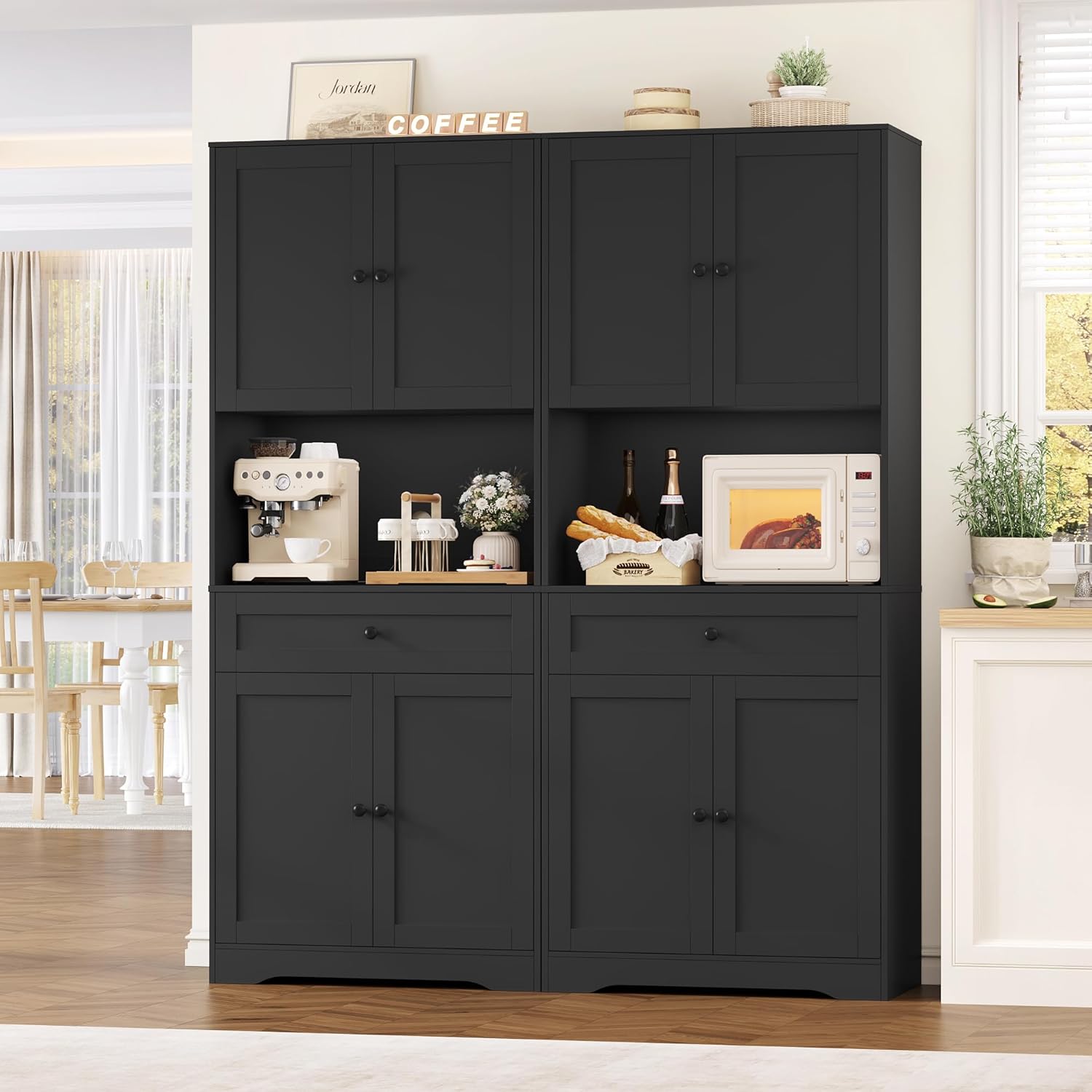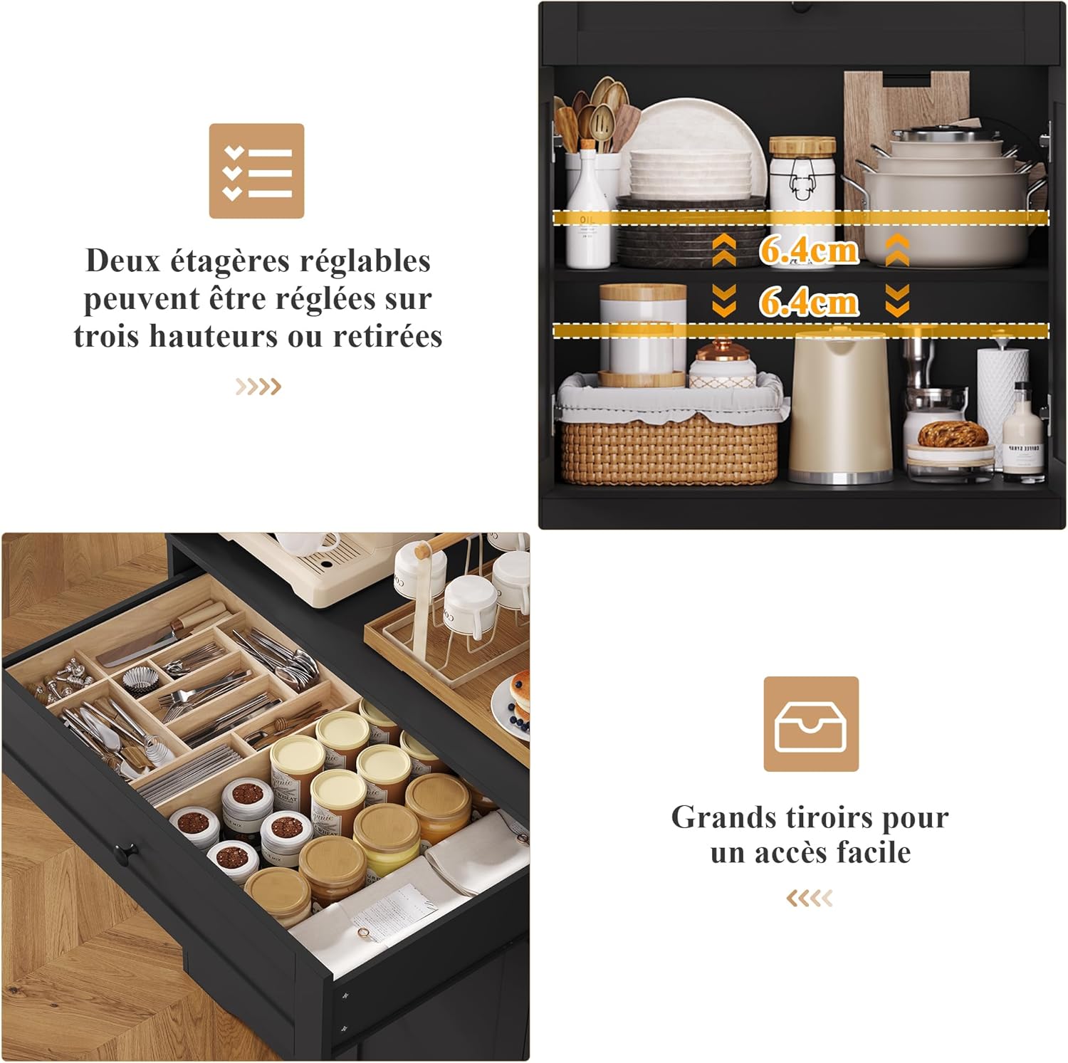 - Assemblage Facile : Ce buffet de cuisine est facile à assembler grâce aux pièces numérotées et aux instructions clairement illustrées. Remarque : Le vaisselier cuisine est livré en deux colis ; veuillez commencer l’assemblage après réception des deux colis