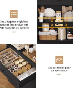 Le buffet FOREHILL offre un bon compromis entre capacité et praticité : les étagères réglables et le trou pour câbles sont appréciables pour y installer un micro-ondes, le tiroir et les portes permettent d’organiser la vaisselle, la finition est propre et l’assemblage reste raisonnable, idéal pour une salle à manger au quotidien.
