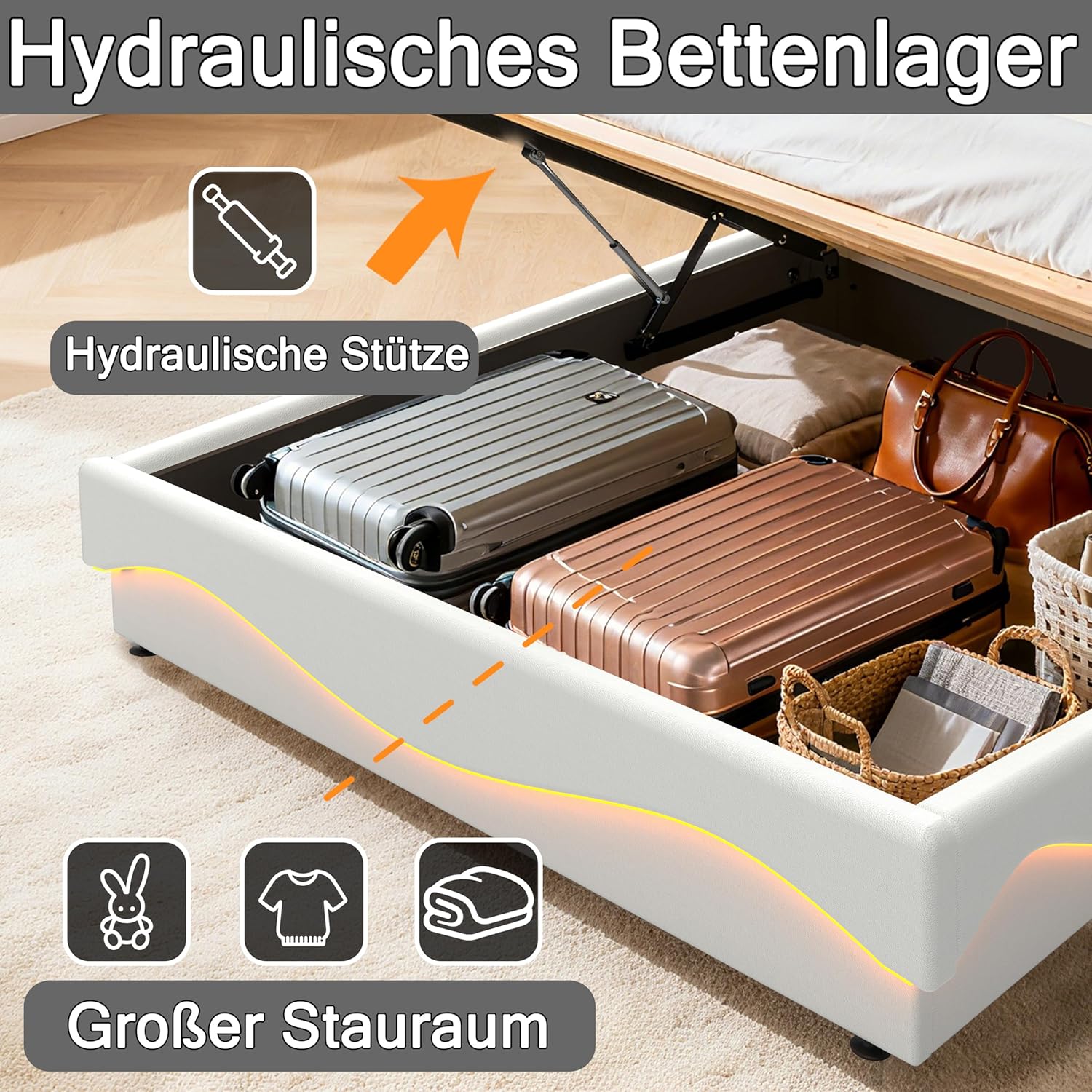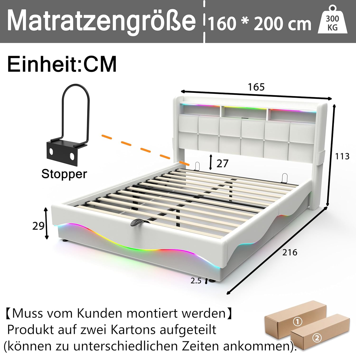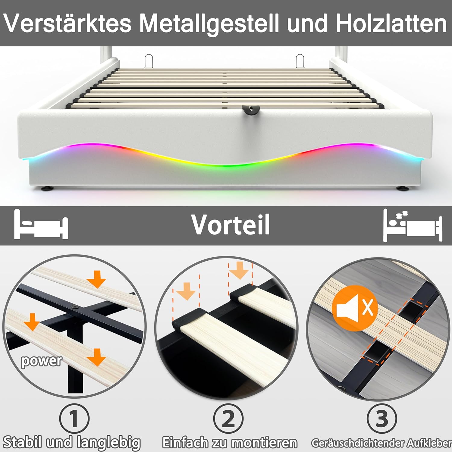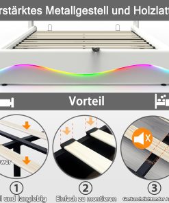Absolute Kaufempfehlung – Top-Qualität zum fairen Preis. Der Aufbau war anfangs etwas anspruchsvoll und zeitintensiv, aber mit Ruhe gut machbar. Der Kundenservice antwortete sehr schnell und hilfreich, so dass offene Fragen klärbar waren. Das Bett ist seit etwa zwei Monaten im täglichen Gebrauch, stabil, hochwertig verarbeitet und entspricht den Produktbildern; in Natura wirkt es sogar noch schöner. Die integrierte Beleuchtung schafft eine moderne, gemütliche Atmosphäre und ist ein echtes Highlight. Das Preis-Leistungs-Verhältnis überzeugt, wir würden das Bett jederzeit wieder kaufen und empfehlen es uneingeschränkt.