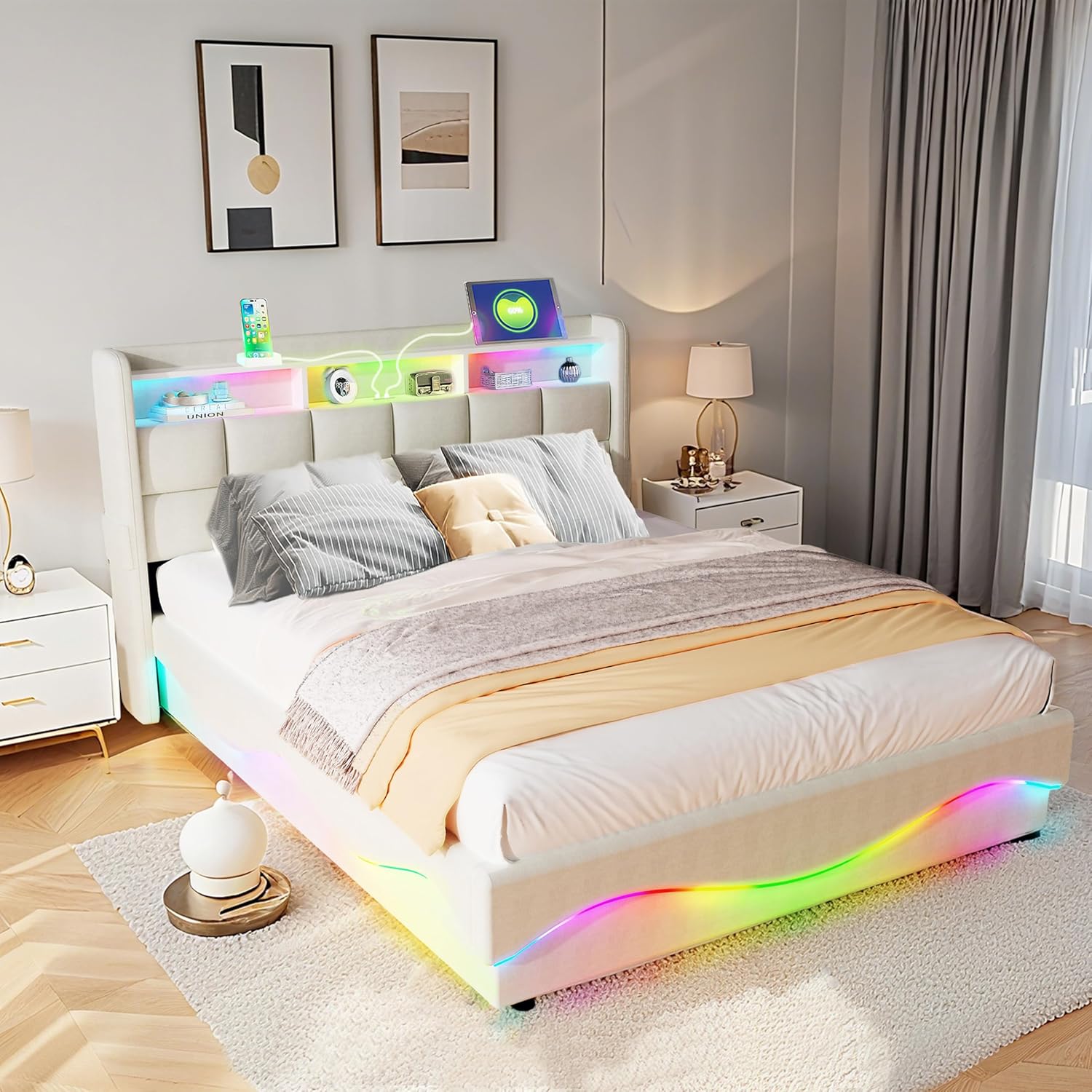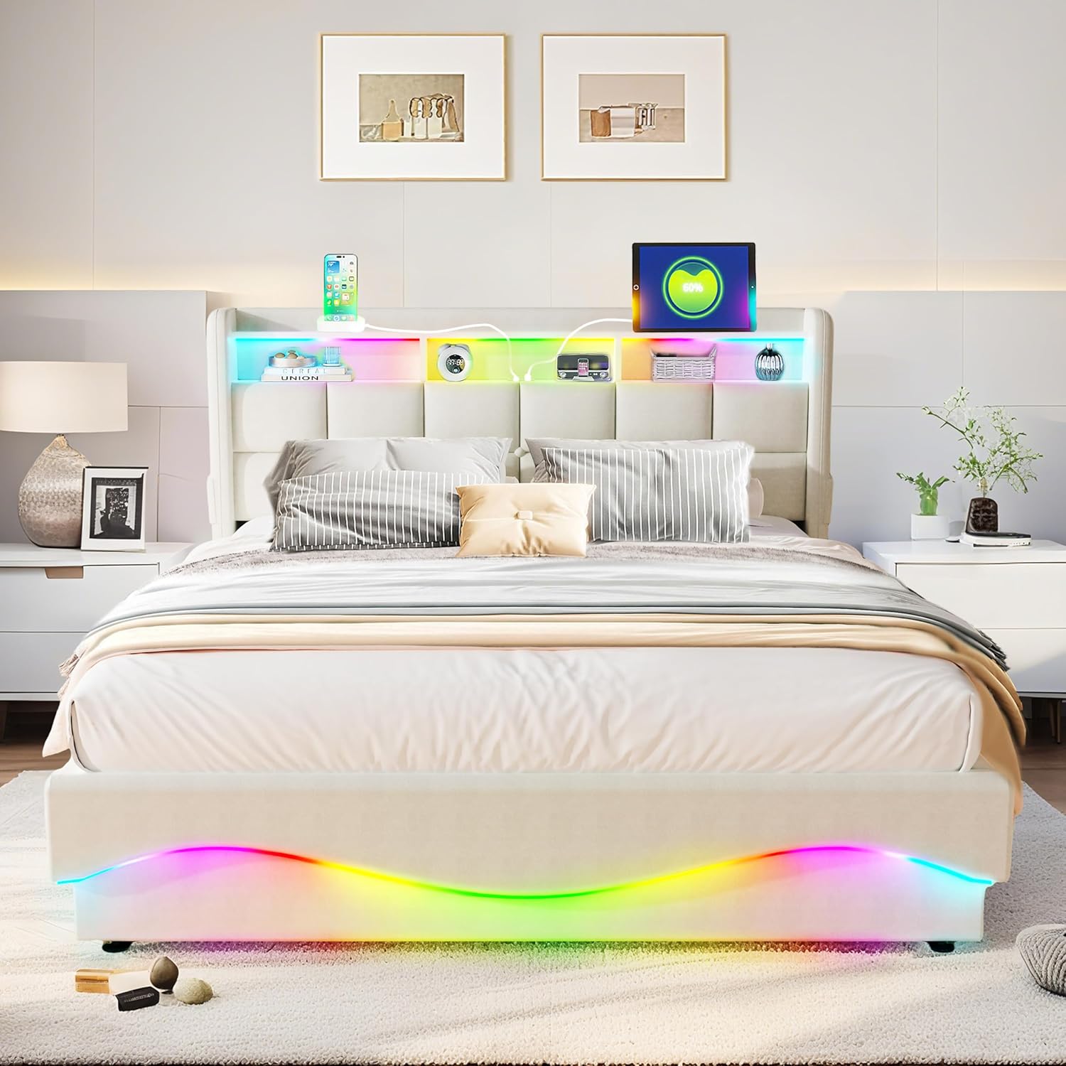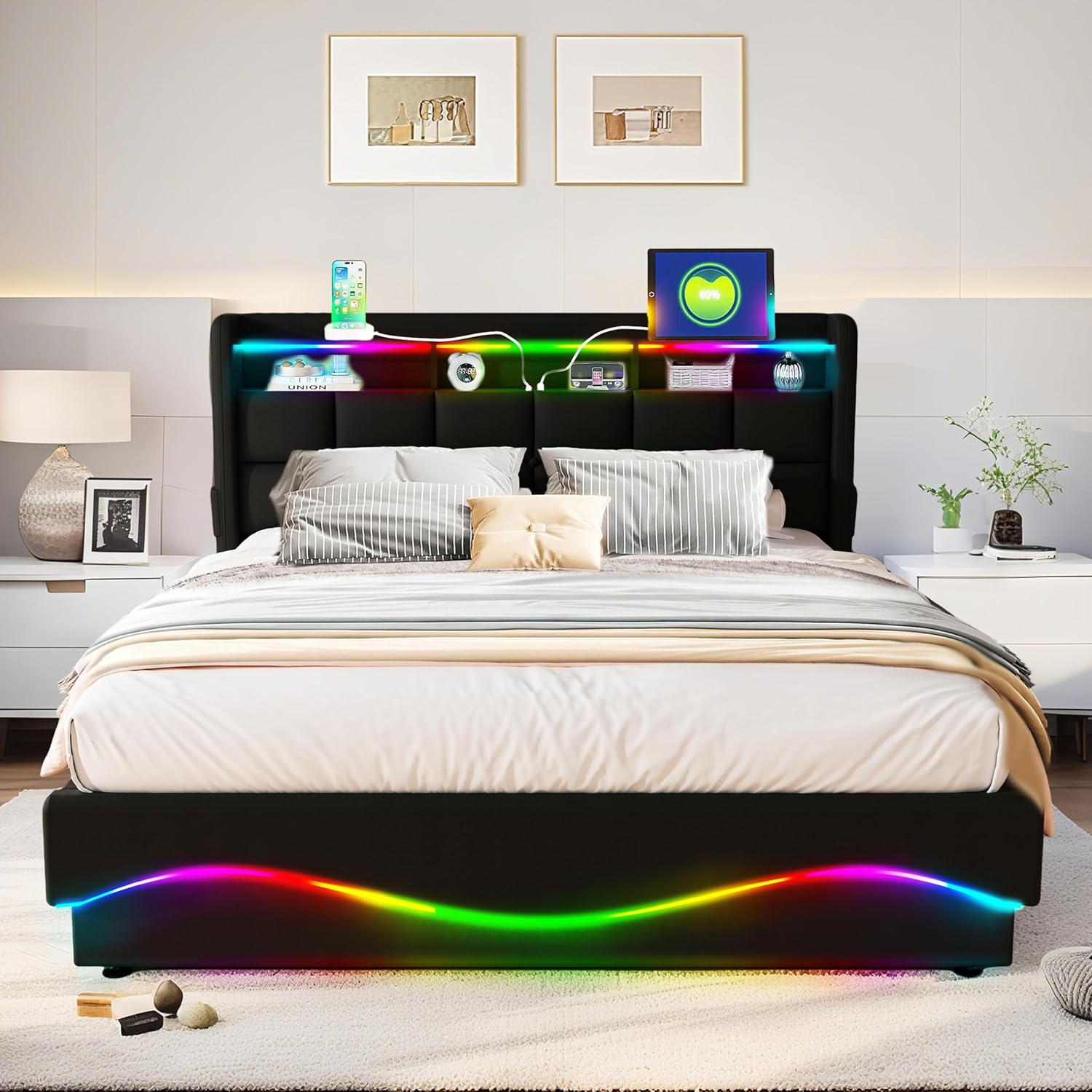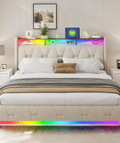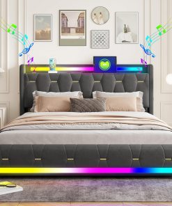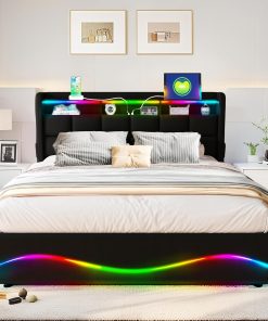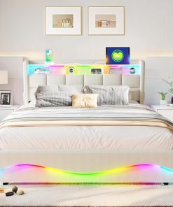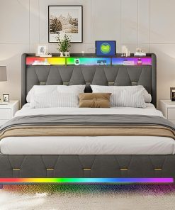 - 【Étagère de Rangement de Tête de Lit】Lit avec rangement dans la tête de lit.La tête de lit dispose d’une tablette de rangement de 10 cm de largeur, gardant les essentiels quotidiens comme les appareils électroniques et les clés à portée de main. Vous pouvez également régler librement la luminosité de l’éclairage selon votre humeur ou le scénario, en adaptant sans effort l’ambiance à différents moments de la vie.