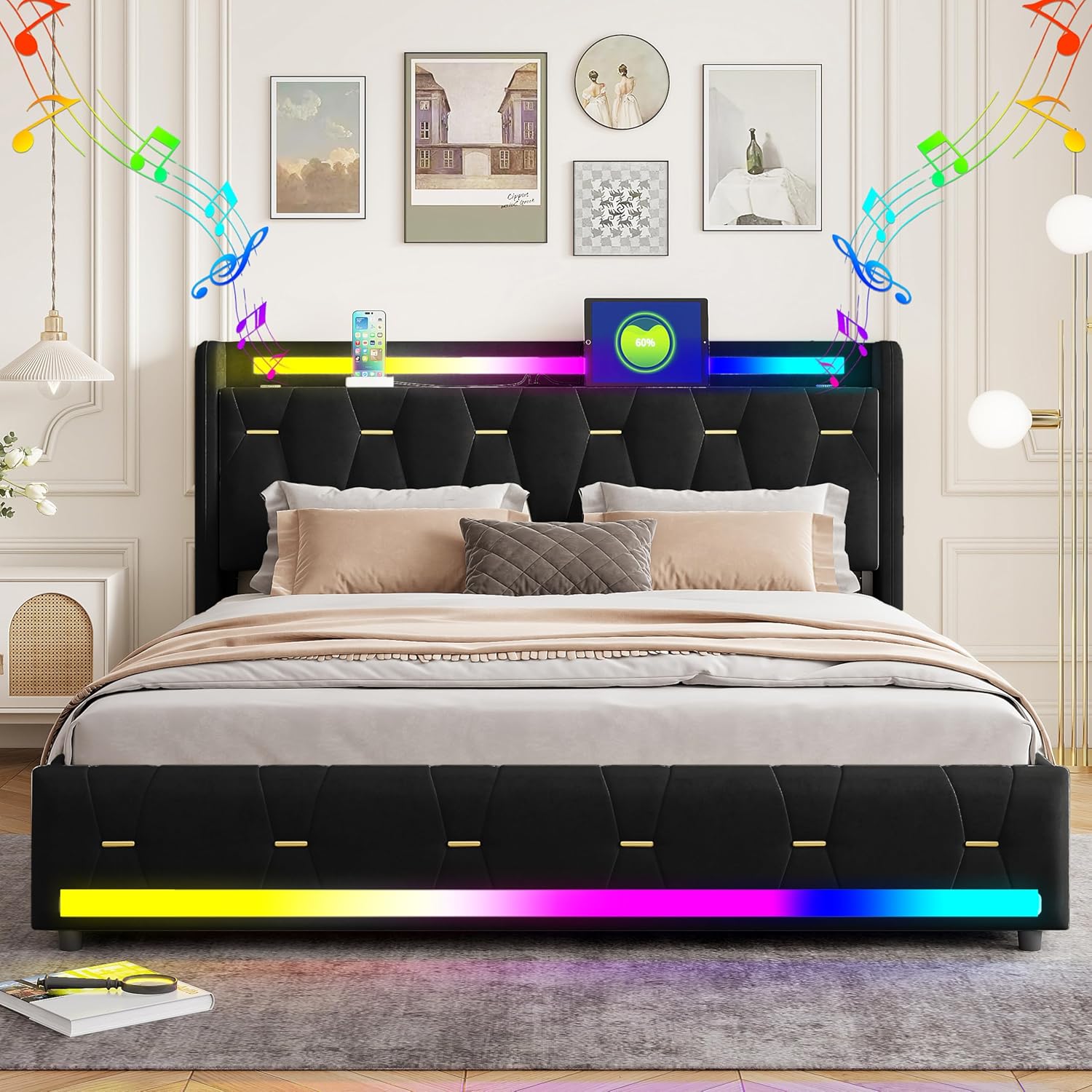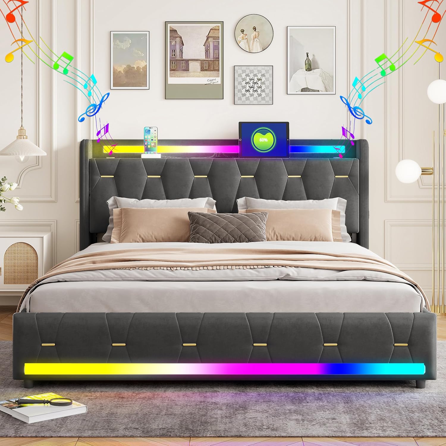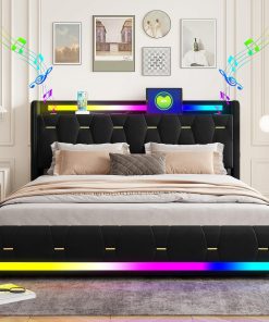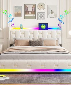 - 【Éclairage d’ambiance LED】Lit avec éclairage LED. Ce lit relevable intègre des bandeaux LED de la tête au pied. Ses flancs ondulés créent un effet lumineux dynamique. Les LEDs proposent des dizaines de couleurs et synchronisent avec le son en pulsant rythmiquement pour une immersion totale. Contrôle par application et télécommande pour personnaliser couleurs et intensité selon l’humeur et les scénarios.
