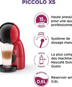 Nescafé Dolce Gusto Krups Machine à café capsules, Pression 15 Bars, Cafetière Dosettes, Multi-boissons Froides Ou Chaudes, Intuitive, Compact, Mode Éco, Piccolo XS Rouge KP1A3510