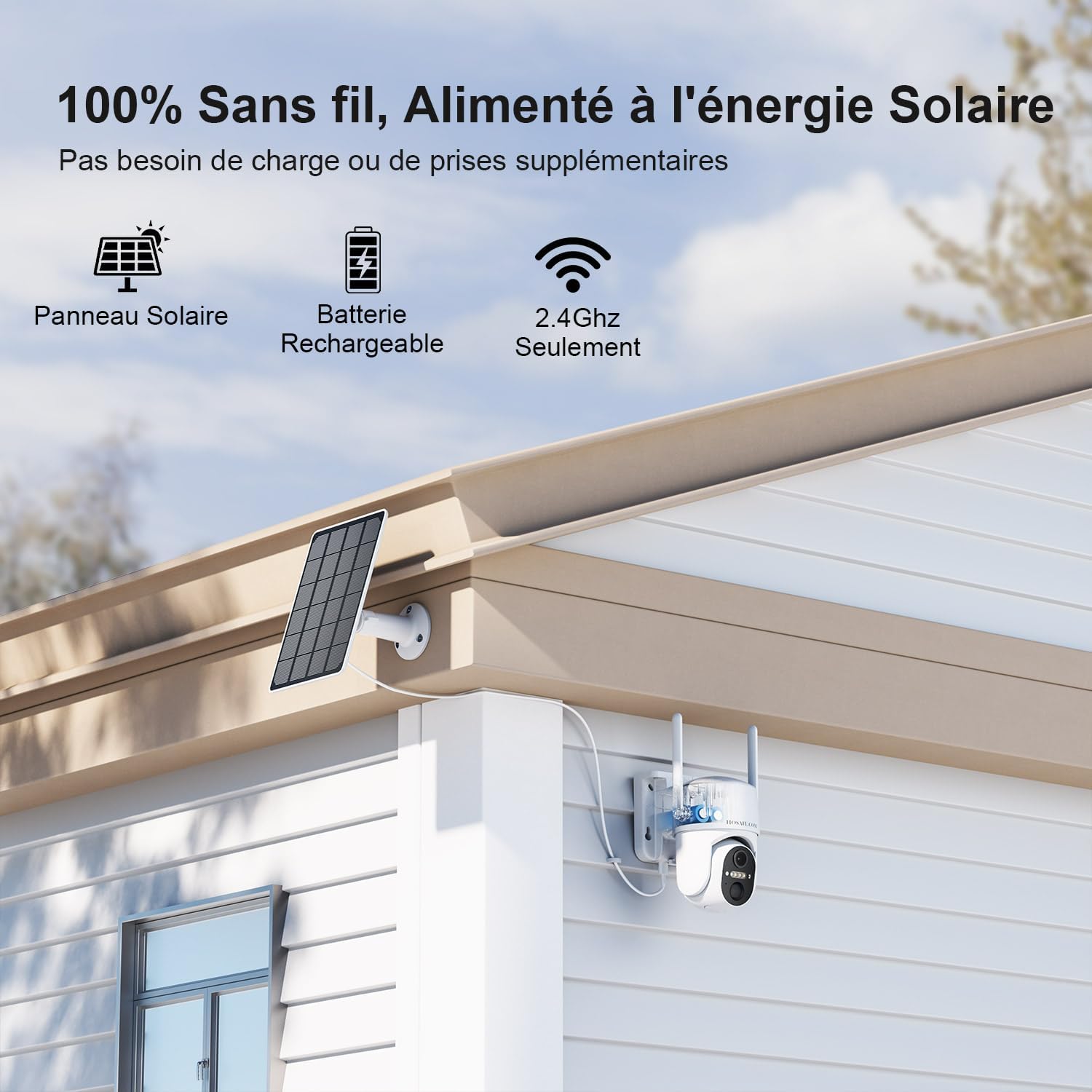 - Caméra WiFi 2,4 G sans fil: La caméra de surveillance extérieur sans fil fonctionne via WiFi 2,4 G (non compatible avec WiFi 5G). Installation facile sans câbles encombrants pour une connectivité stable.