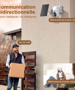 - Alimentation solaire et batterie longue durée: Équipée d’un panneau solaire 6 W et d’une batterie de 9000 mAh, cette caméra de surveillance sans internet garantit une protection continue pendant 365 jours, même dans des conditions difficiles.
