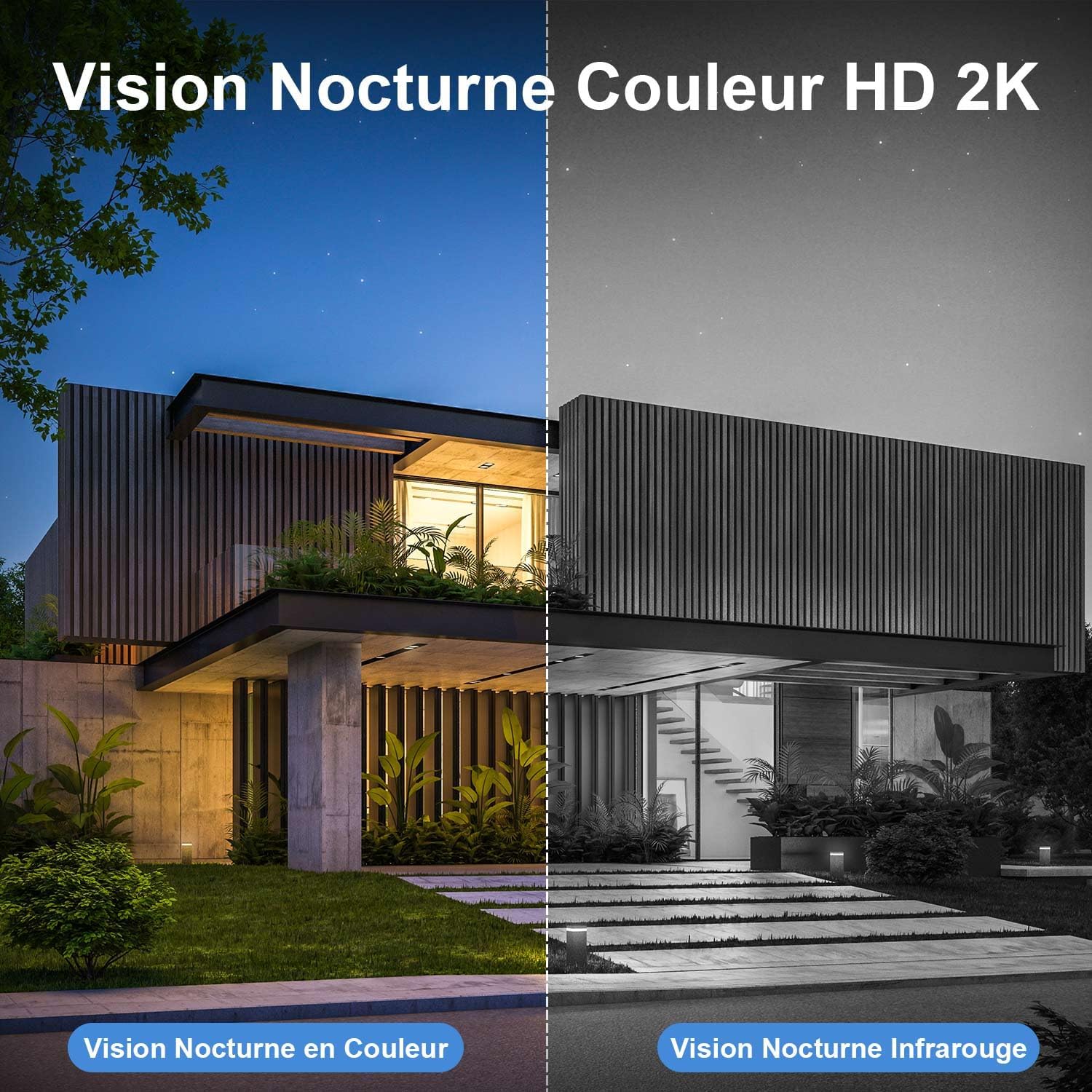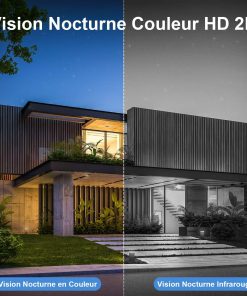 - Résolution 2K et vision nocturne couleur: Profitez d’une qualité d’image nette avec une résolution HD 2K et 4 projecteurs LED, même de nuit, grâce à la caméra de surveillance extérieure sans fil solaire.