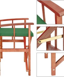 Chaises de cinéma pliantes confortables, le bois paraît solide même s’il est un peu trop orangé à mon goût. Le revêtement n’est pas en tissu mais un tissage légèrement plastifié, peu respirant et peu salissant; il est cousu sur la partie haute de l’appui‑dos, ce qui est un peu surprenant comparé aux chaises habituelles (voir photo).
