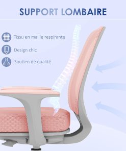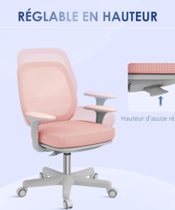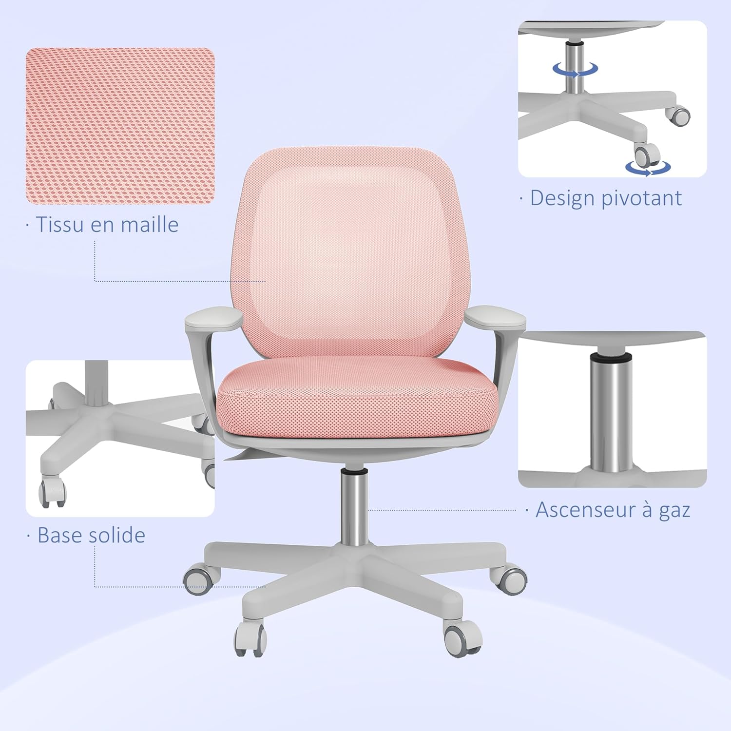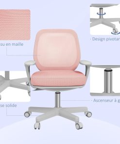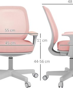 Vinsetto Fauteuil de Bureau, Chaise de Bureau Ergonomique en Maille avec Hauteur réglable, pivotante 360° et Dossier Moyen, pour Chambre, télétravail, Charge 120 Kg, Rose