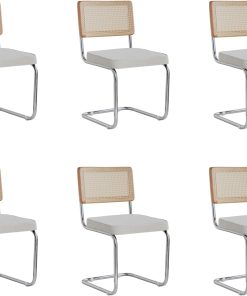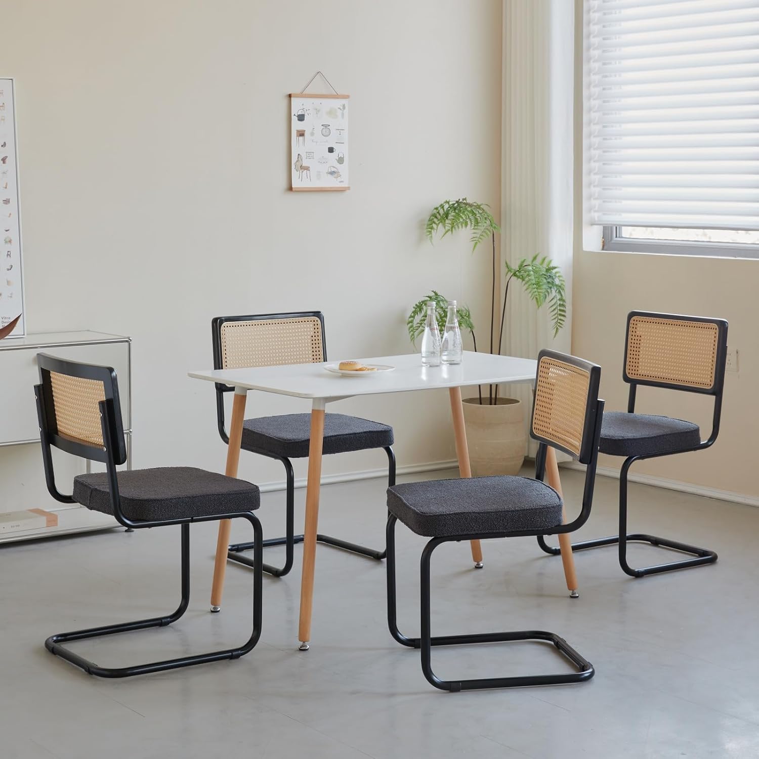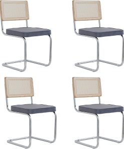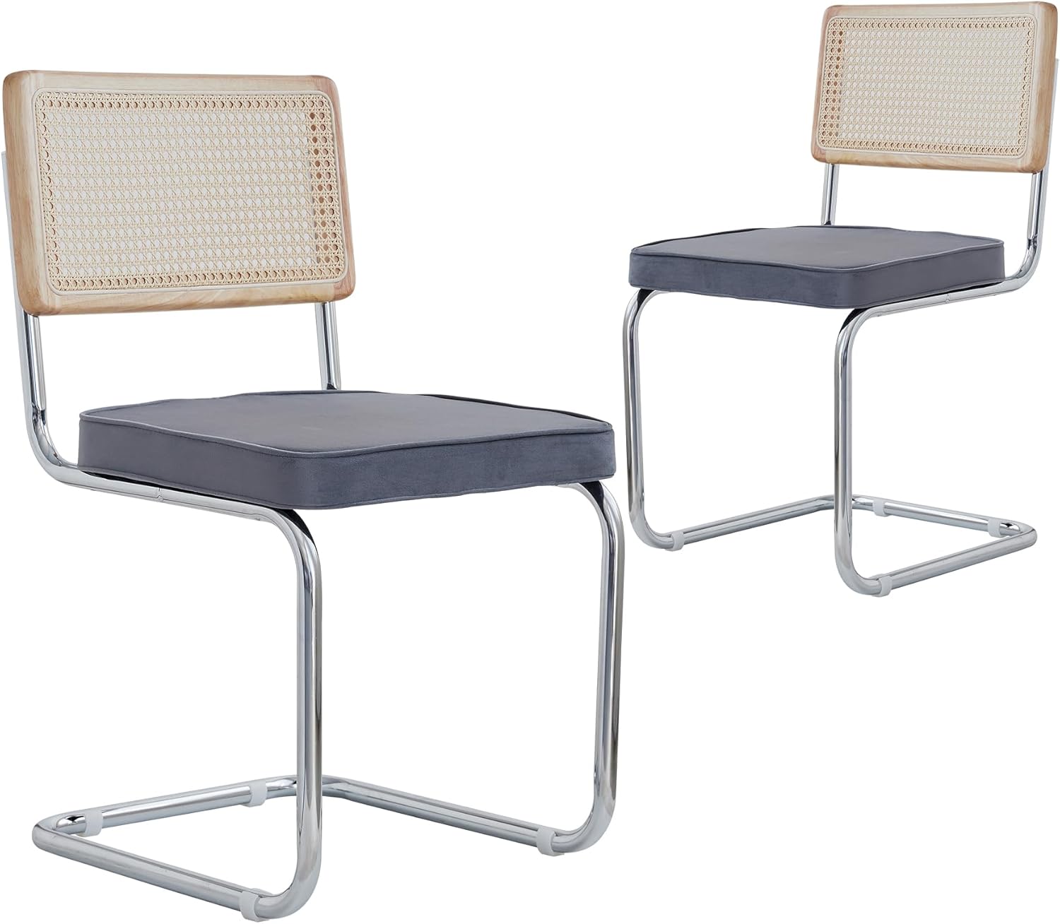 - Matériau de haute qualité : les chaises de salle à manger en porte-à-faux sont complétées par des matériaux contrastés comme la canne douce, le velours granulaire et le cadre chromé fluide.