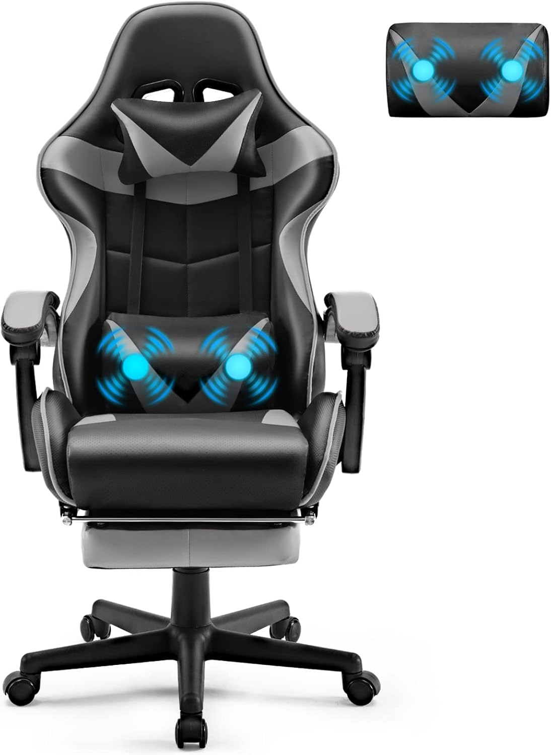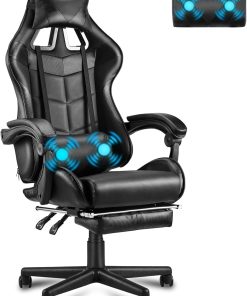 Chaise confortable et bien pensée pour le jeu comme pour le télétravail, le repose-pieds et l’appui-tête apportent un vrai plus et le coussin lombaire massant améliore nettement le confort lors des longues sessions; finition propre en blanc, montage simple et matériaux solides, je recommande vivement. Note: 5