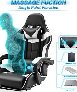 Description du produit Soontrans Chaise Gaming Racing Chaise Gaming Massante, Siege Gaming avec Soutien Lombaire Massage et Appui-tête, Dossier Haut, Fauteuil Gaming Pivotant pour Youtube Livestream Playstation (Blanc) Avertissement De Sûreté Attention: Assemblez la chaise en suivant les instructions fournies pour assurer la sécurité de l’utilisateur.