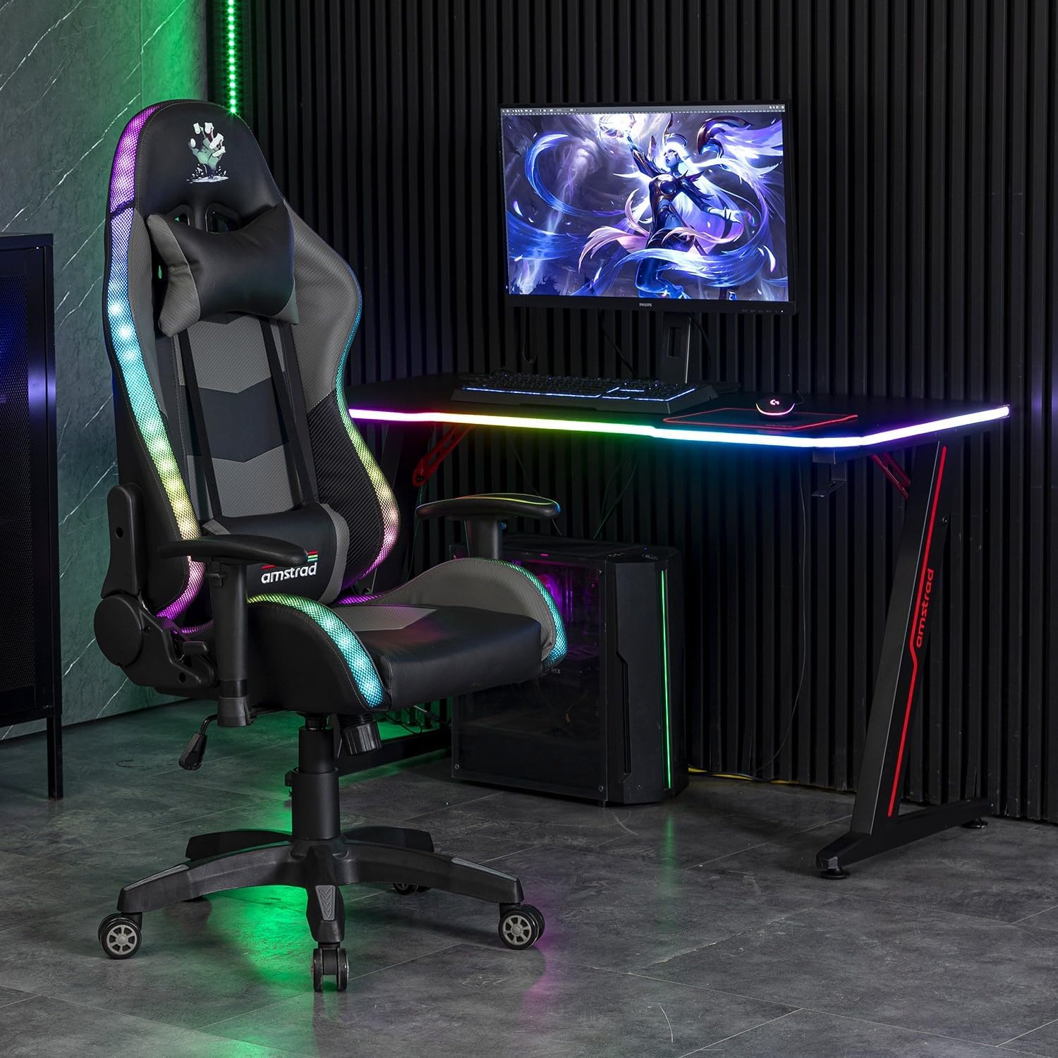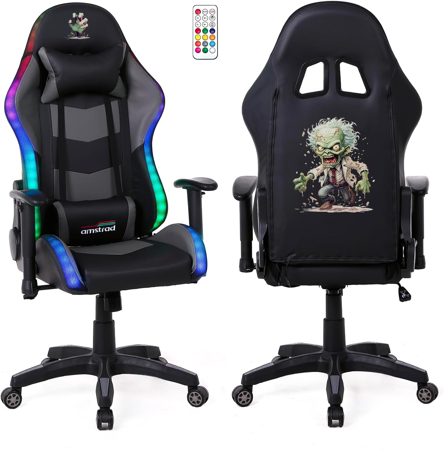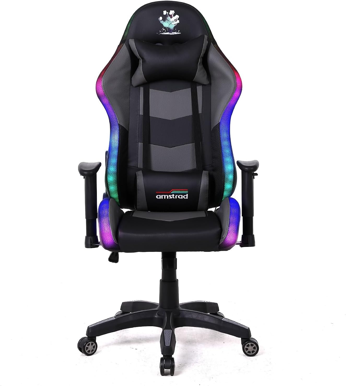 Très satisfait de ce fauteuil gaming Amstrad Elite-LED-Zombie : design noir et gris original, assise confortable pour de longues sessions, les éclairages LED et la télécommande créent une vraie ambiance personnalisable, les accoudoirs 2D sont pratiques et la construction paraît solide pour le prix.