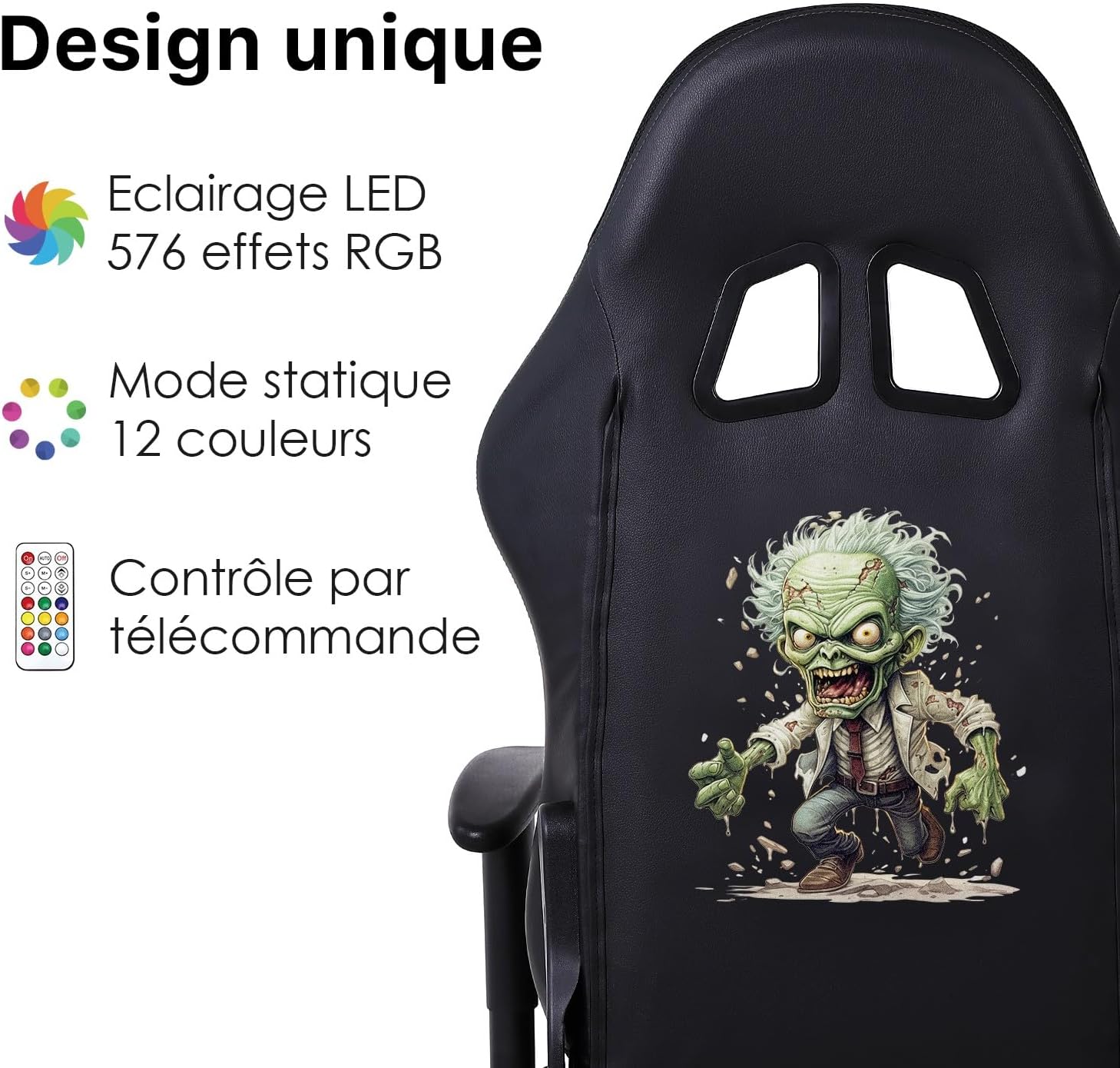 - ✅ Chaise gaming LED avec sérigraphie unique & originale