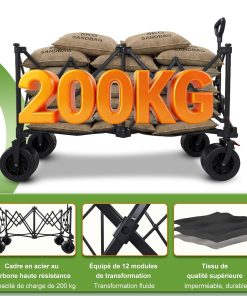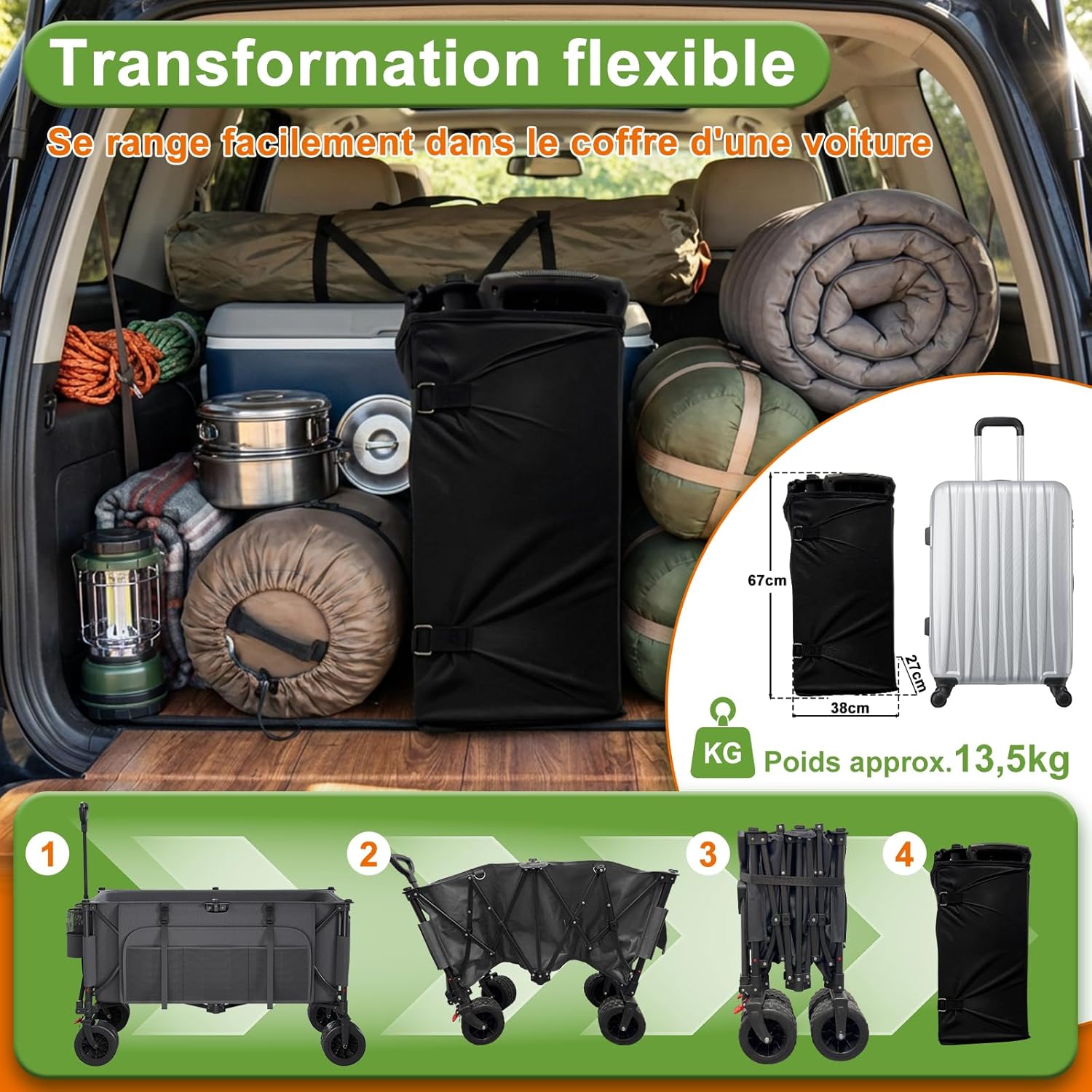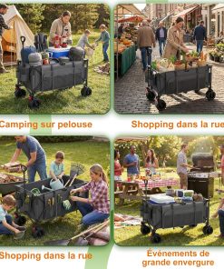 - 【Large gamme d’applications】Le chariot à roulettes est ergonomique et facile à pousser et à tirer. Parfait pour les sorties à la plage, les pique-niques, le camping, le shopping, le jardinage, le transport d’animaux domestiques ou d’enfants en bas âge et d’autres activités de plein air pour découvrir la nature. Disponible en trois couleurs, selon vos préférences.