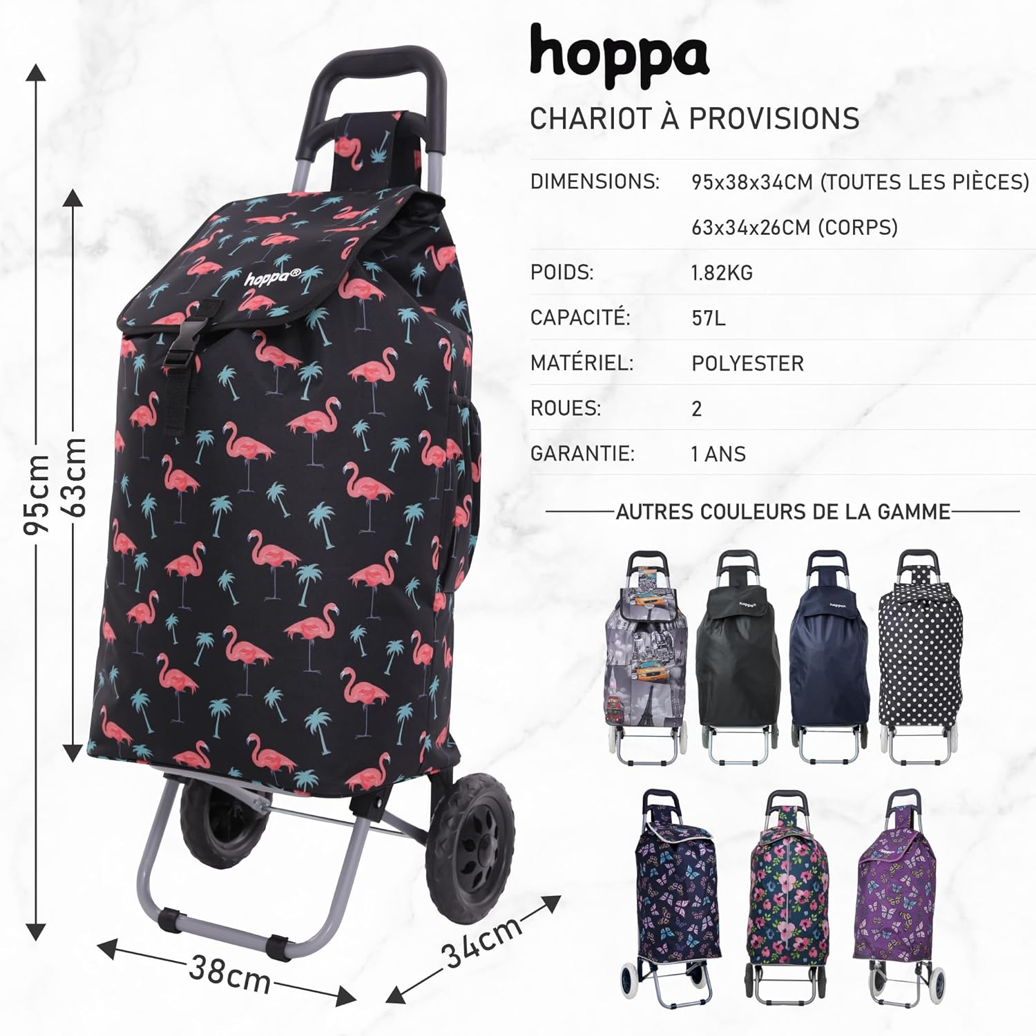 Hoppa 57L Chariot De Magasinage Léger, Résistant Et Pliable pour Un Rangement Facile avec 1 Ans De Garantie